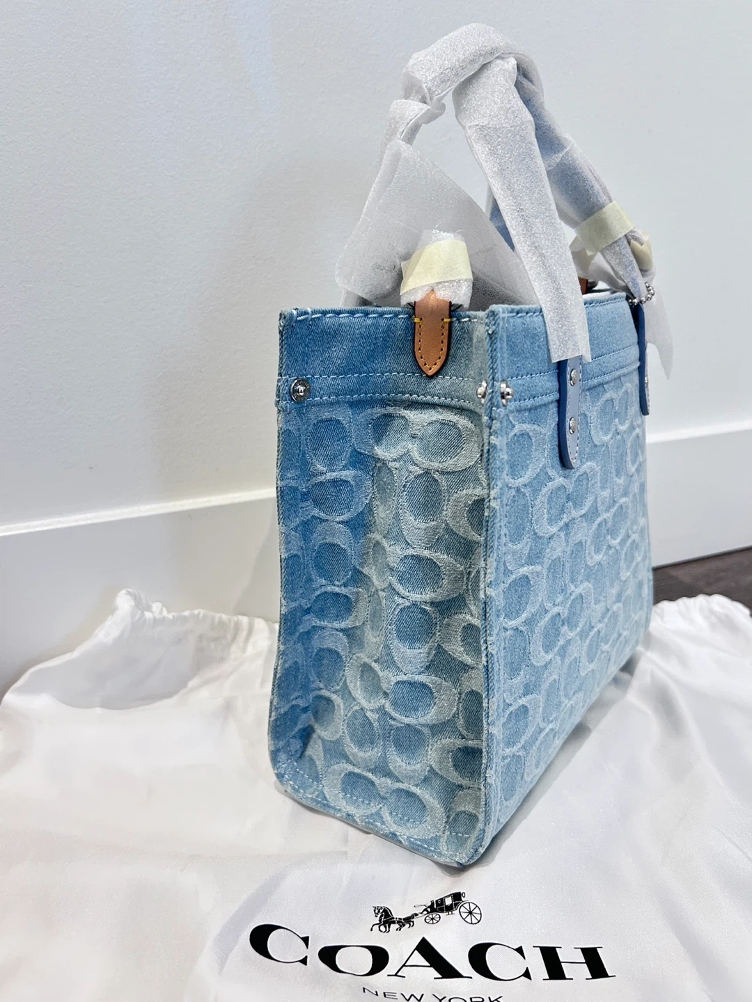 10Selling a brand new Coach Denim Floral Tote 22 ! It's in perfect condition and comes with the original packaging. The bag features a beautiful denim floral pattern, comes with long strap ! It's a stylish and practical accessory for everyday use! Original price 480CAD plus tax !
