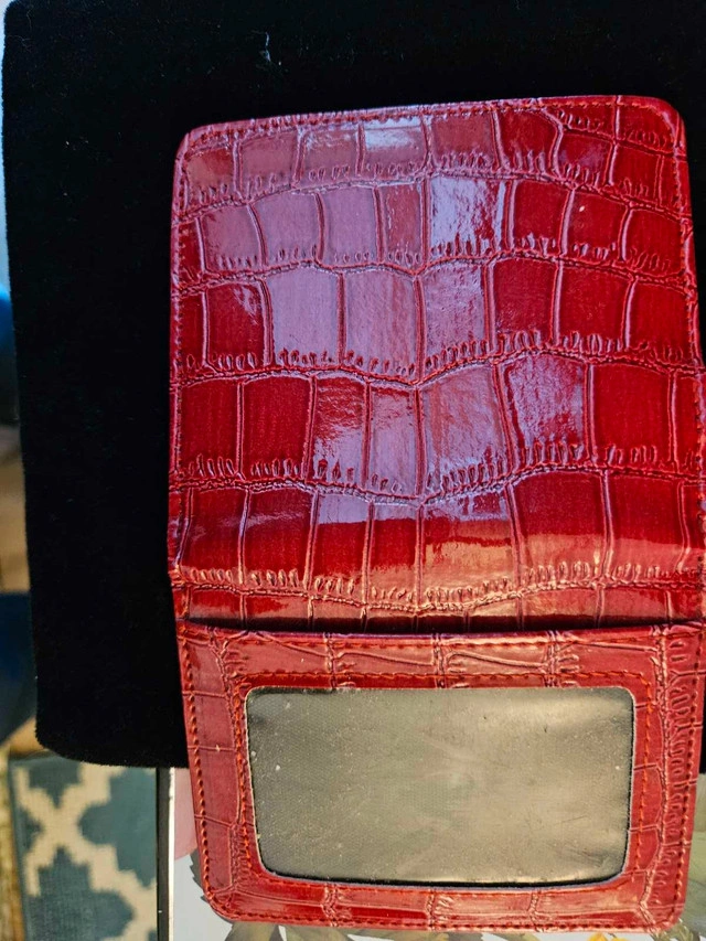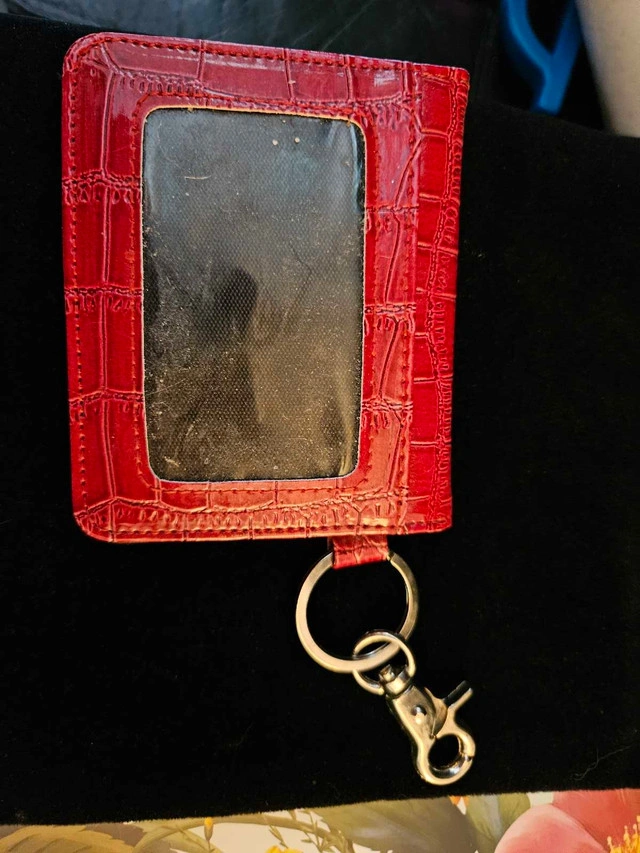 This eye-catching red card holder, in a used condition, combines both fashion and functionality. Perfect for keeping your essential cards secure and accessible, it's a stylish accessory for anyone on the go. Here are some details about this item: * Colour: Red * Texture: Embossed * Features: Key ring and lobster clasp