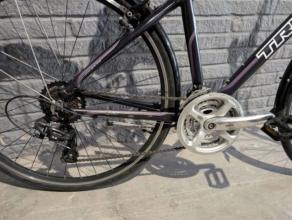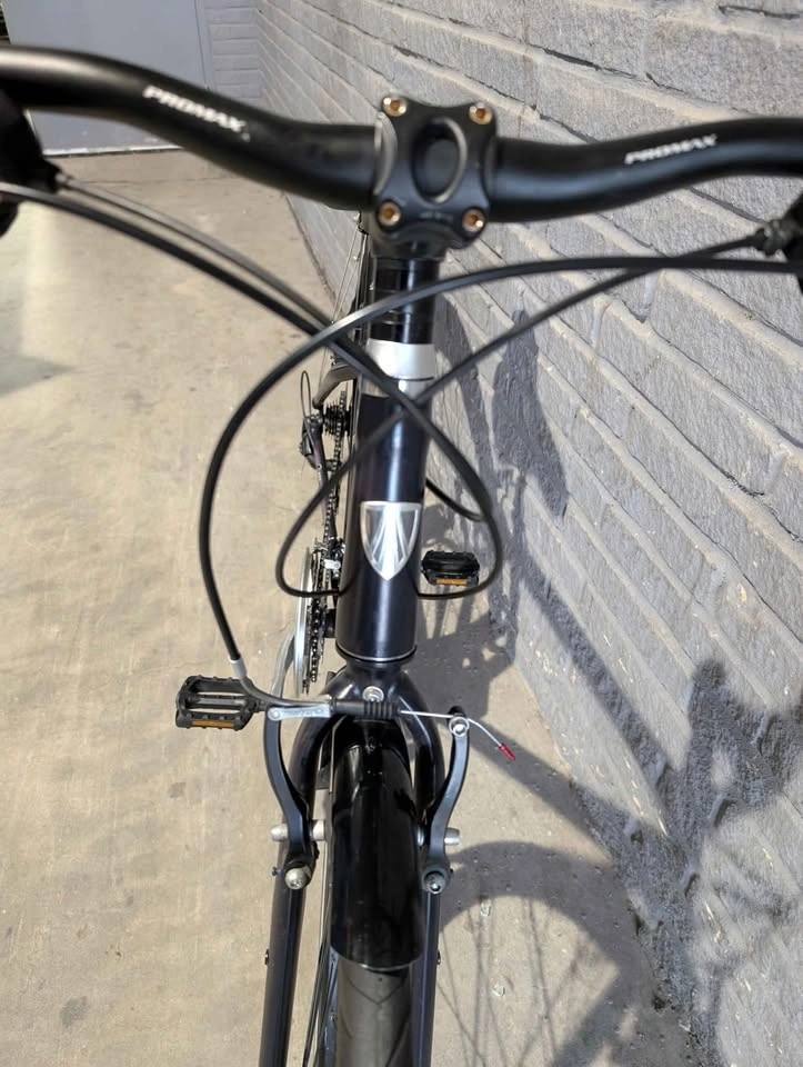 Aluminum frame, fork. 3x7 Shimano drivetrain. Sealed bottom bracket. Comes with fender& kickstand, brake cable and housing is brand new and shift cable and housing is brand new. If the ad is up, it's available!