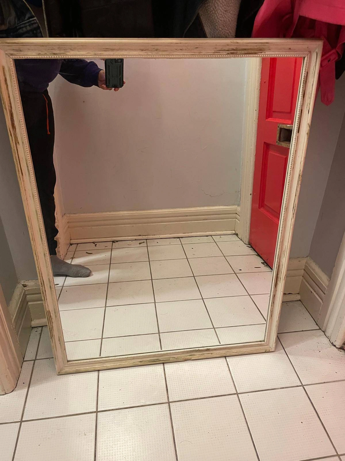 FOR SALE: Vintage Off-White Framed Wall Mirror – $10