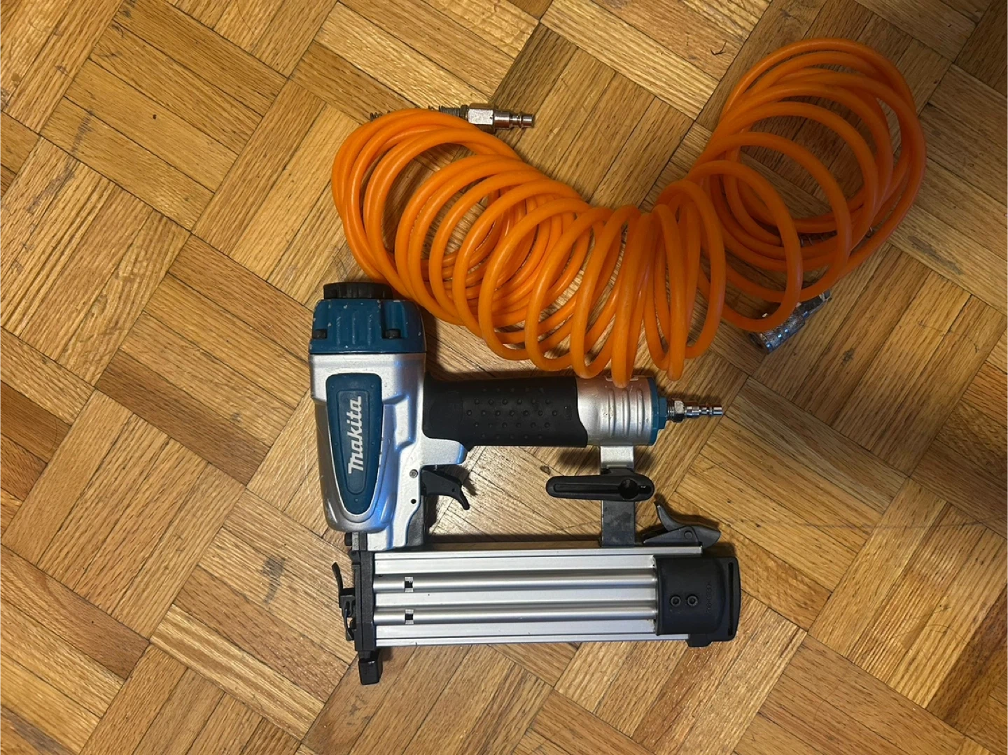 Selling a Makita nail gun that's in great shape! It comes with an orange hose, so you're all set to start your projects. It's ready for a new home and some serious use