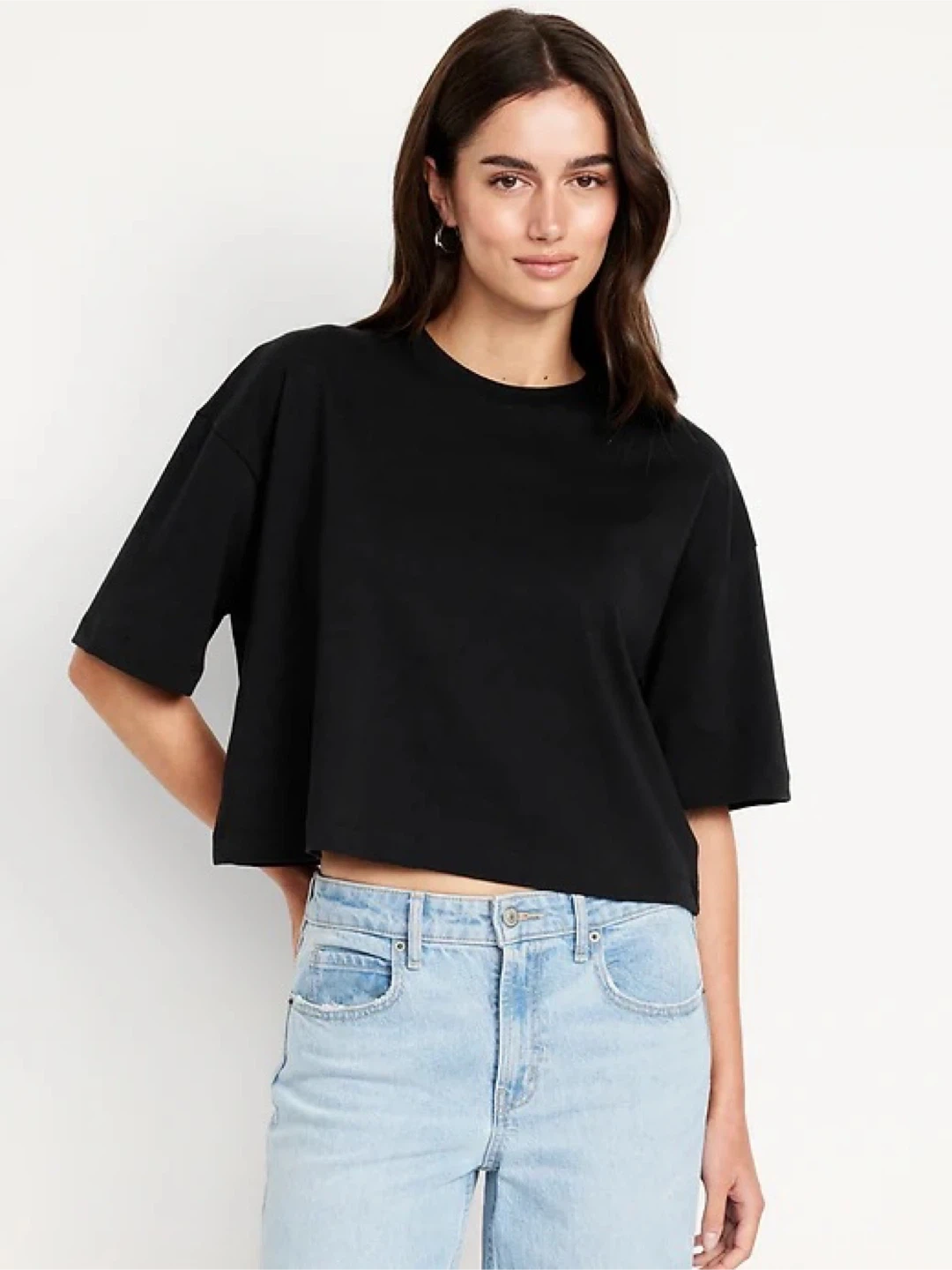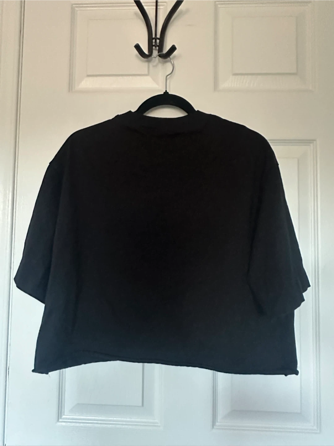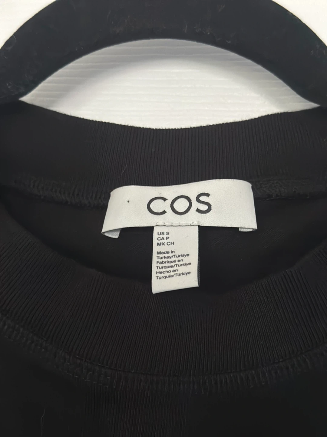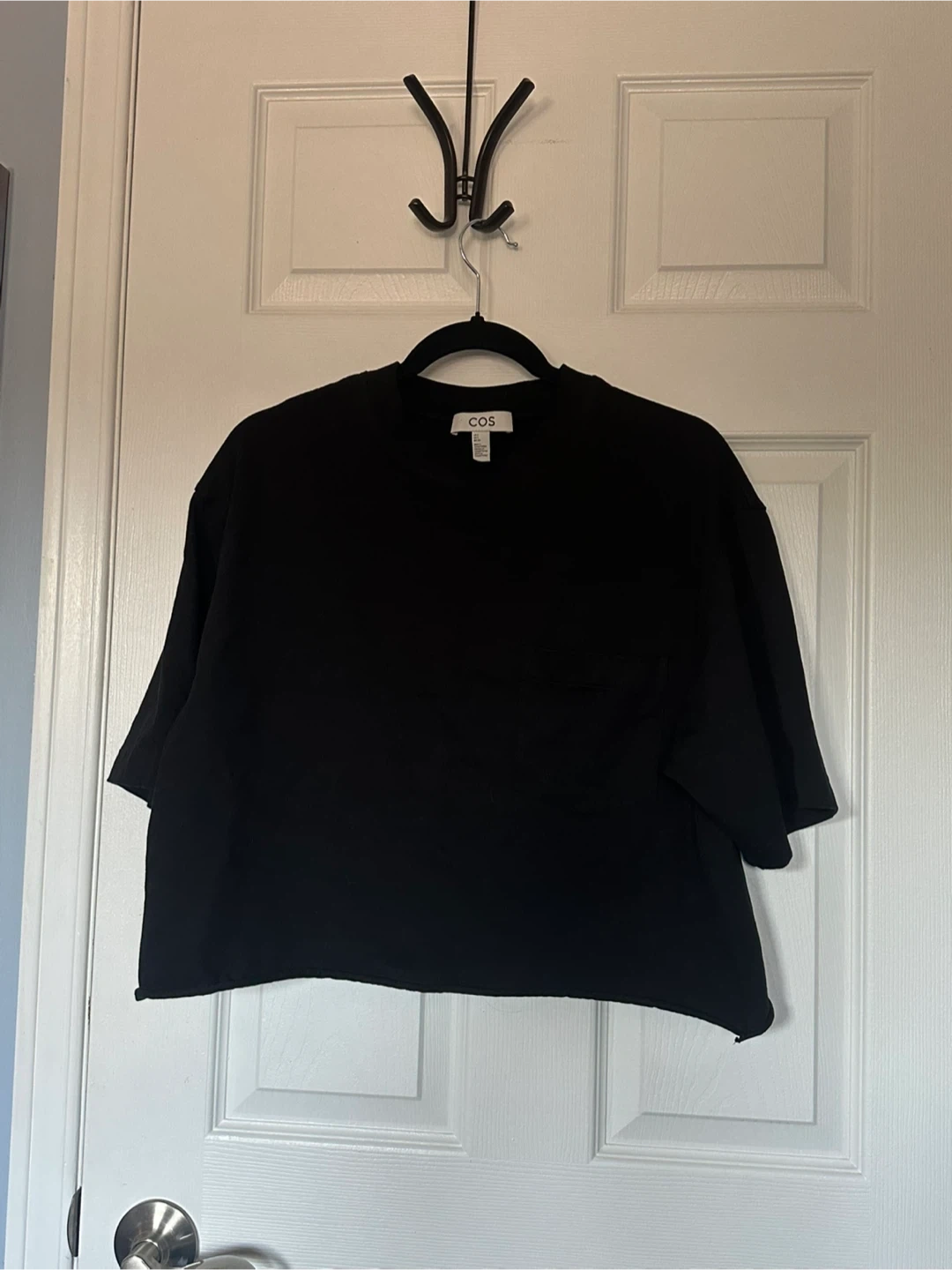 Selling a gently used COS black crop t-shirt in size small. It's in great condition and ready for a new home! The material is soft and comfortable, perfect for everyday wear!