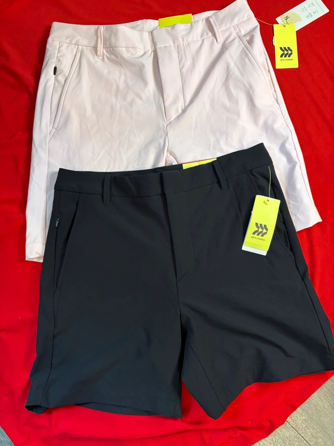 Two pairs of golf shorts from All in Motion! One pair is black and the other is a light pink color. Both are in great condition and ready for the course
