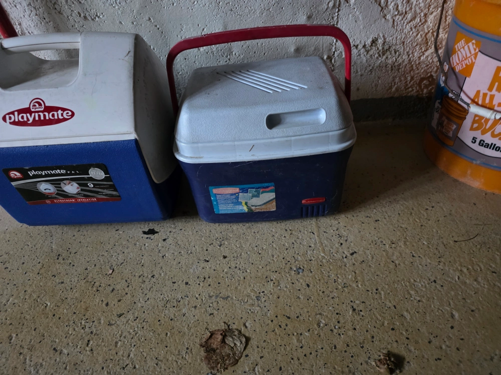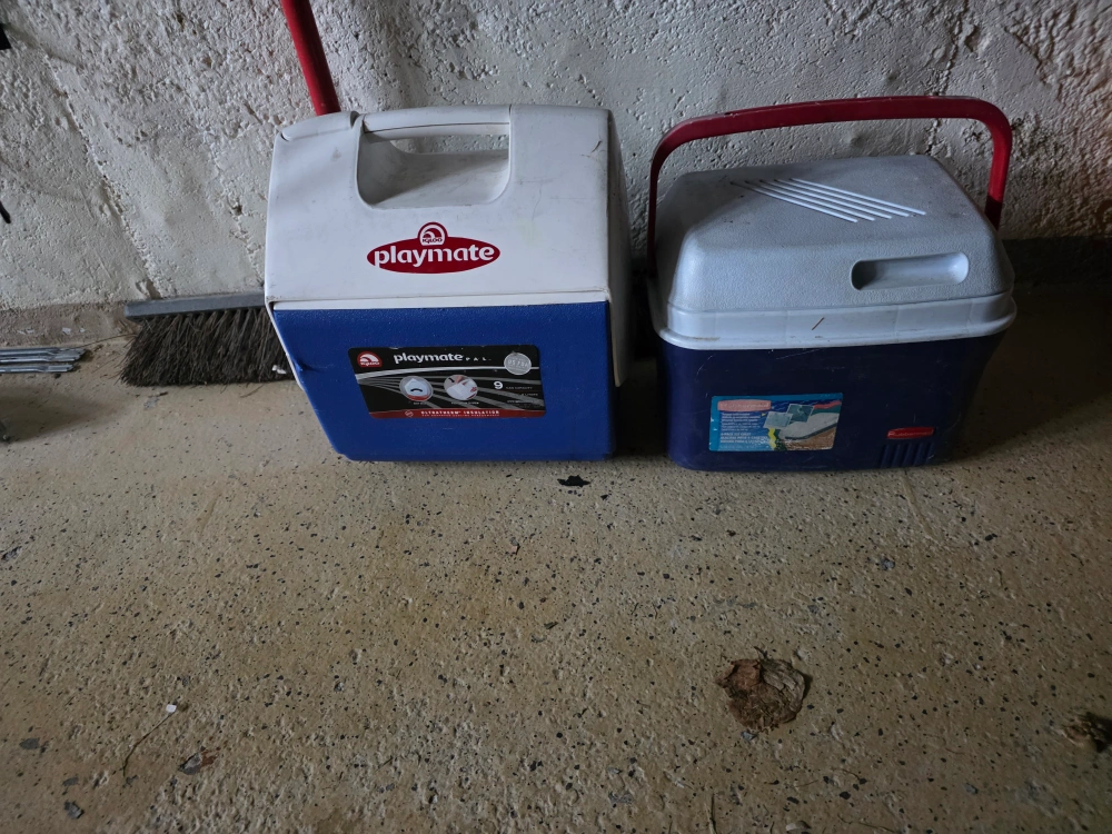 Selling two coolers: an Igloo Playmate and a Redmon cooler. Both show signs of use but are still functional for keeping your items cool on the go