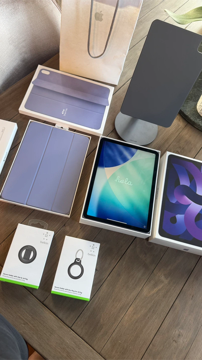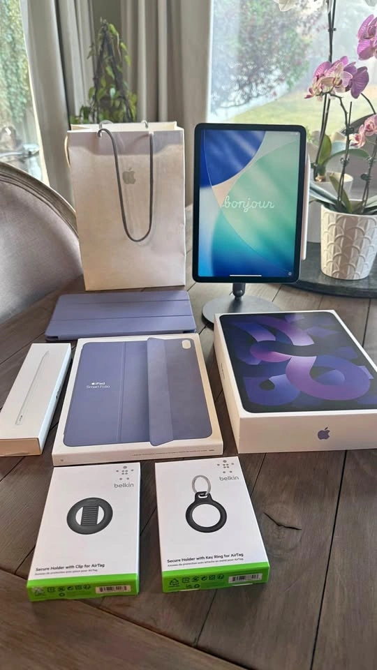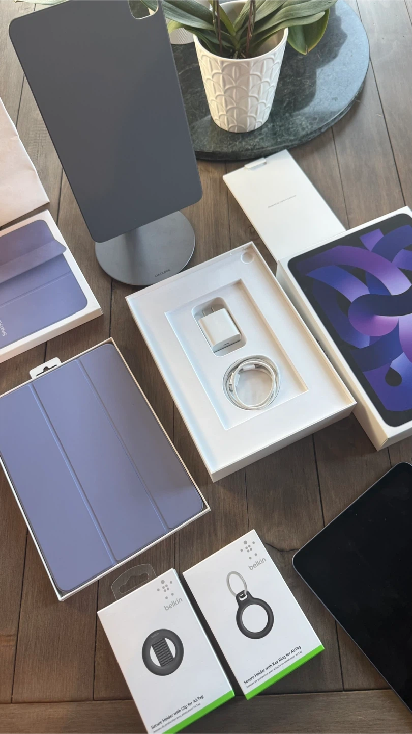 • iPad Air 5th Generation (64GB, Wi-Fi, 10.9”, Purple) – with original box and charging accessories. Hardly used since purchasing in 2022, since I have a MacBook.