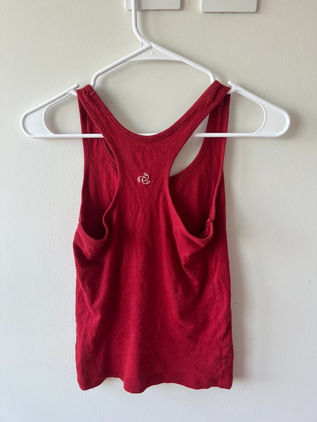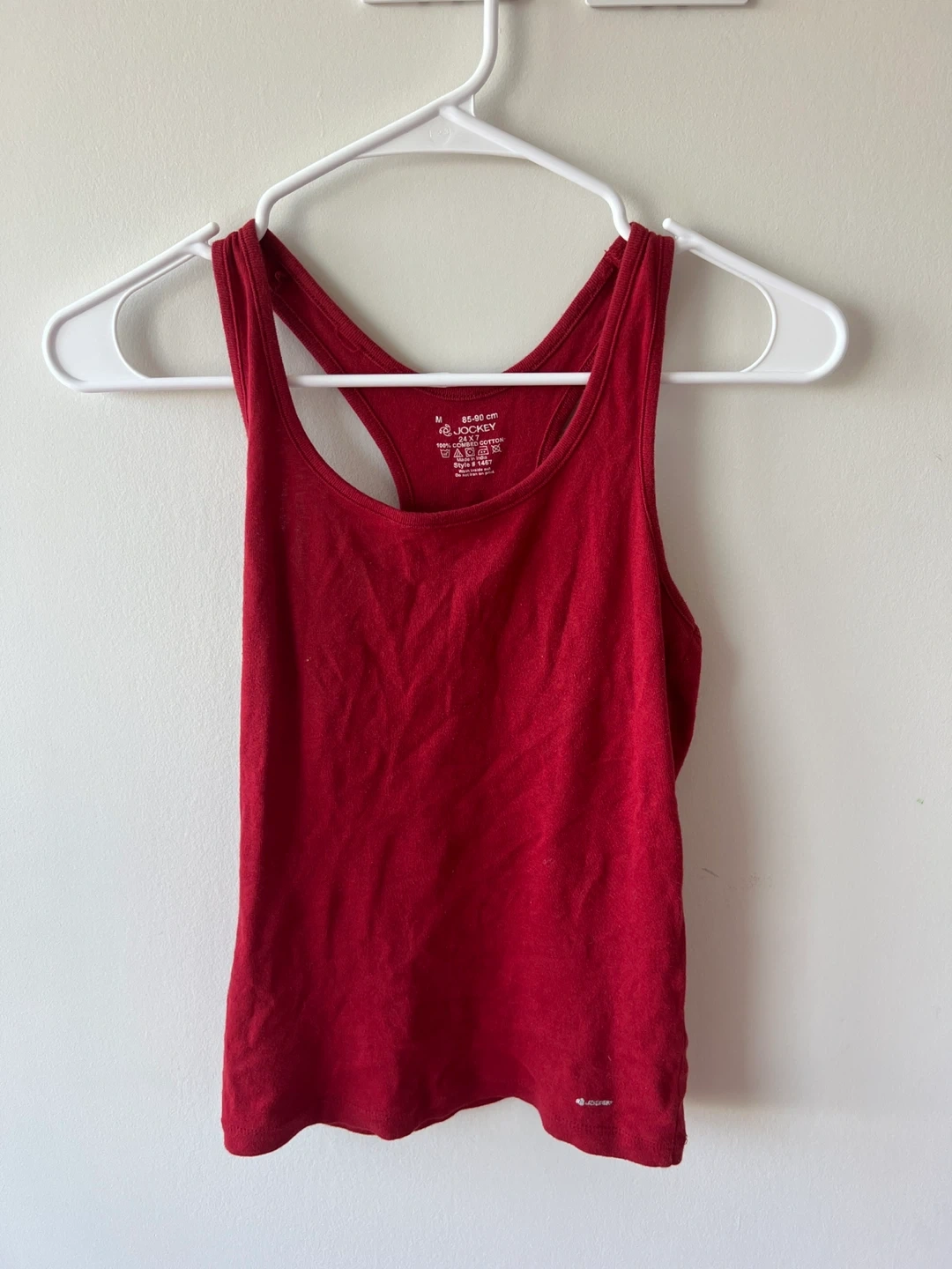 10Red-maroon tank top, great for sportswear, loungewear, or sleepwear. Size small to medium. In decent condition and comfortable fit. Price: $4 Pickup near Gilmore Station. ✨ Feel free to check out more tops on my account, I can offer a discount if you’re buying multiples!