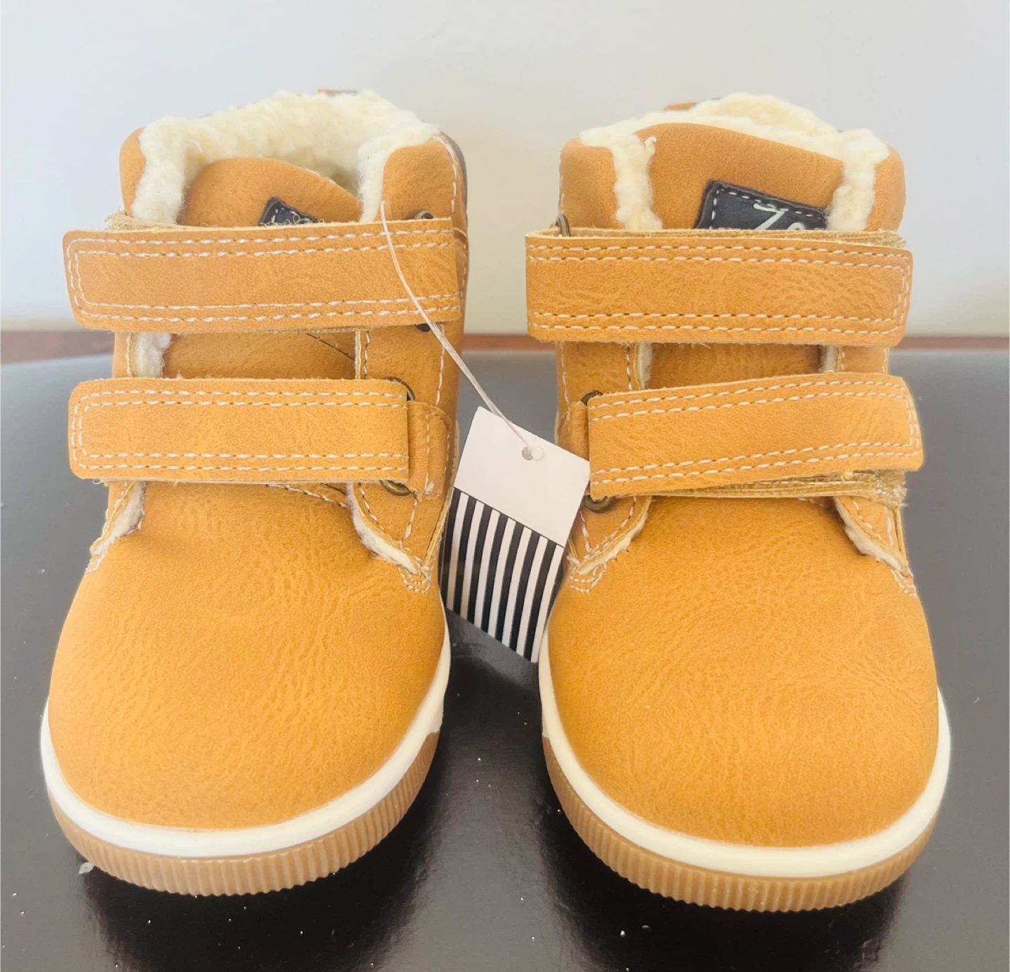 Cute kid boots, perfect for keeping little feet warm!They are a size 8, and feature a velcro closure.The inside is lined with a soft, plush material to keep your little one cozy.This is NEW.