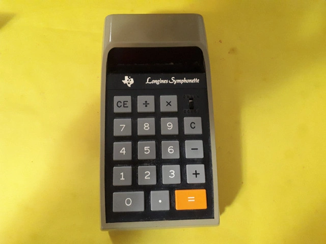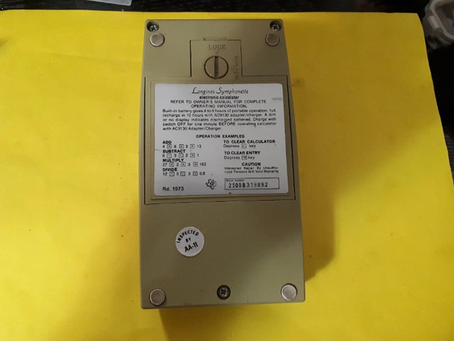 Longines Symphonette Electronic Calculator (TI-2500B) for sale as is. Exterior of calculator is in mint condition. However, the calculator only turns on for a few seconds and then goes off (see video). No power cord.
