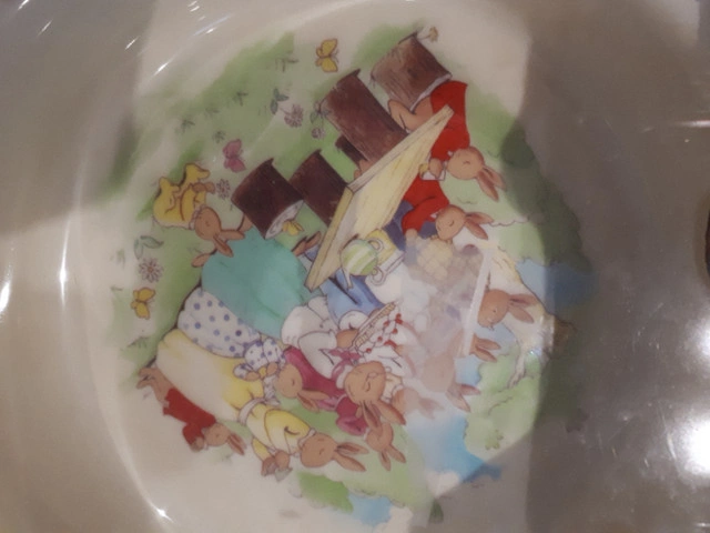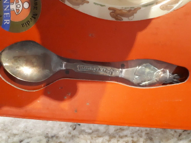 New in the box Bunnykins feeding bowl and silver plated spoon from Royal Doulton. Perfect baby shower gift.