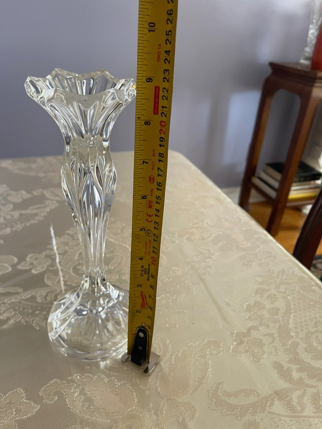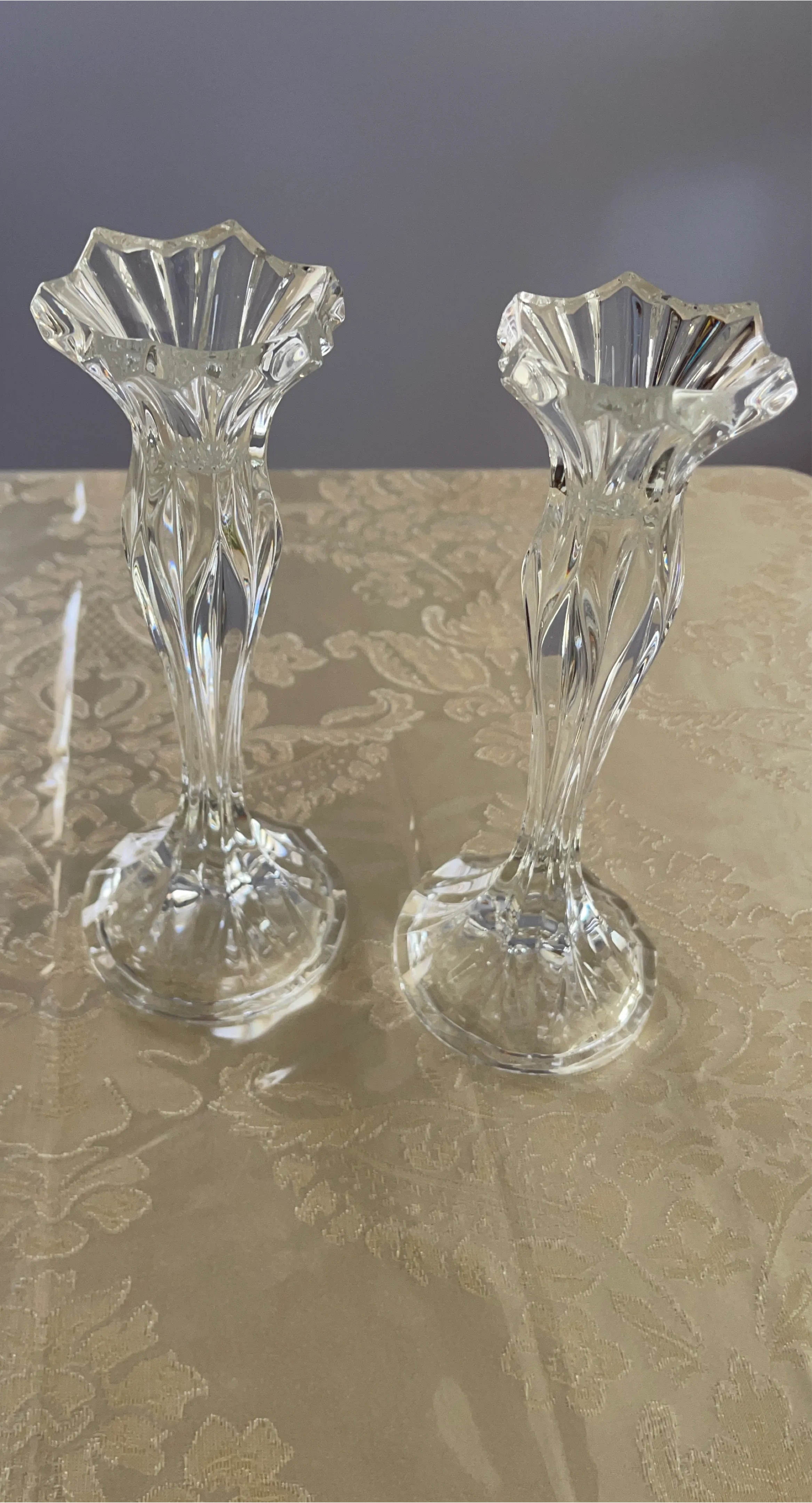 Selling a beautiful pair of crystal candle holders. They stand approximately 10 inches tall. GD Durand They have a lovely, elegant design that would look great in any room. Perfect for adding a touch of sparkle to your home decor