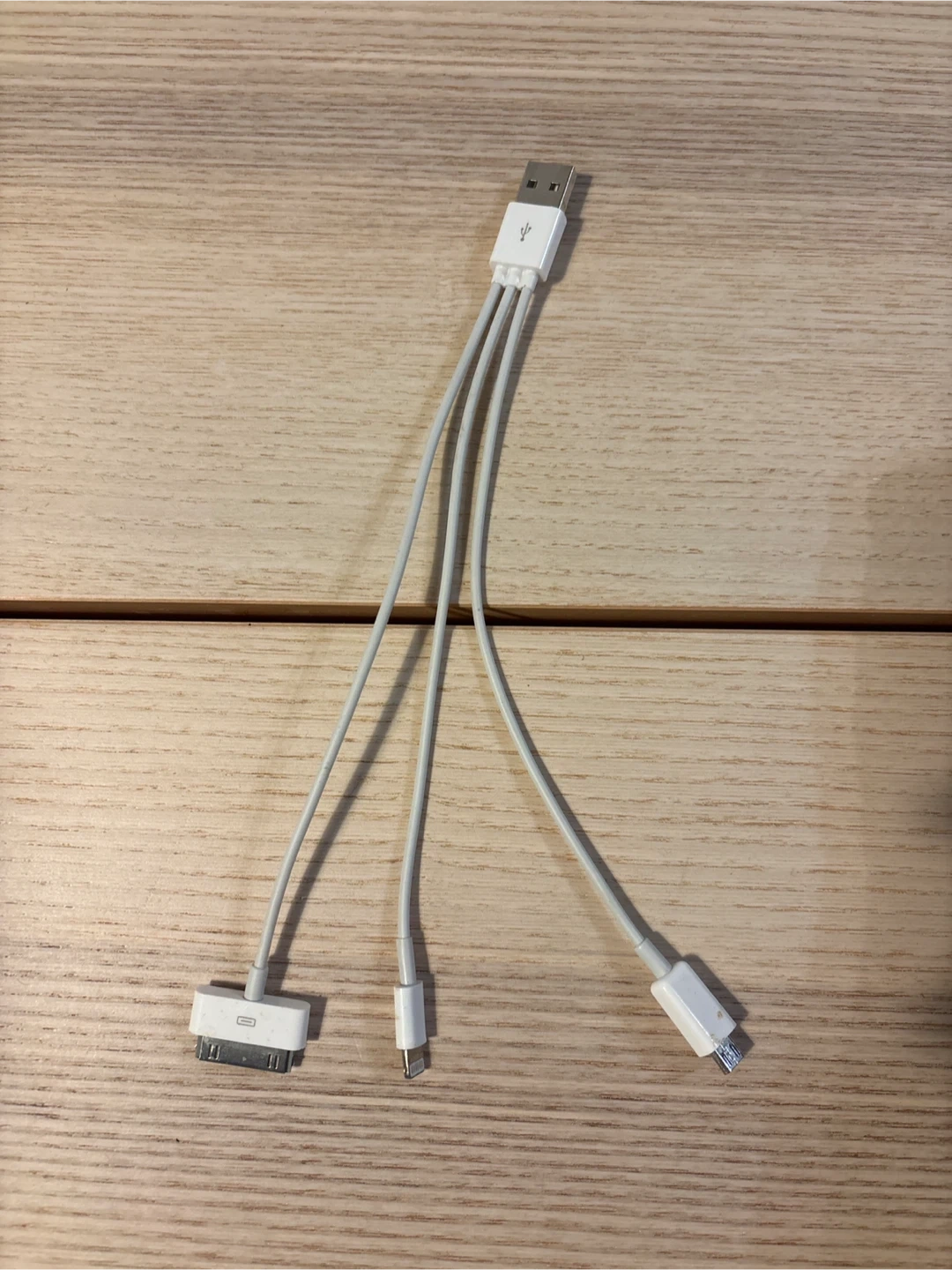 60Selling a handy 3-in-1 multi charging cable! It features a standard USB on one end and three different connectors on the other: a 30-pin connector, a micro-USB connector, and a mini-USB connector. Perfect for charging multiple devices with one cable