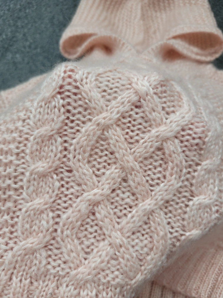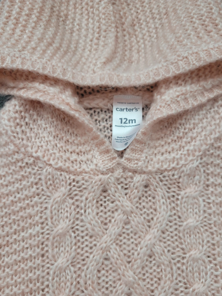 A cozy pink knit hoodie from Carter's in size 12 months. This sweater is in great condition and features a cute knit pattern on the front. Perfect for keeping your little one warm and stylish!