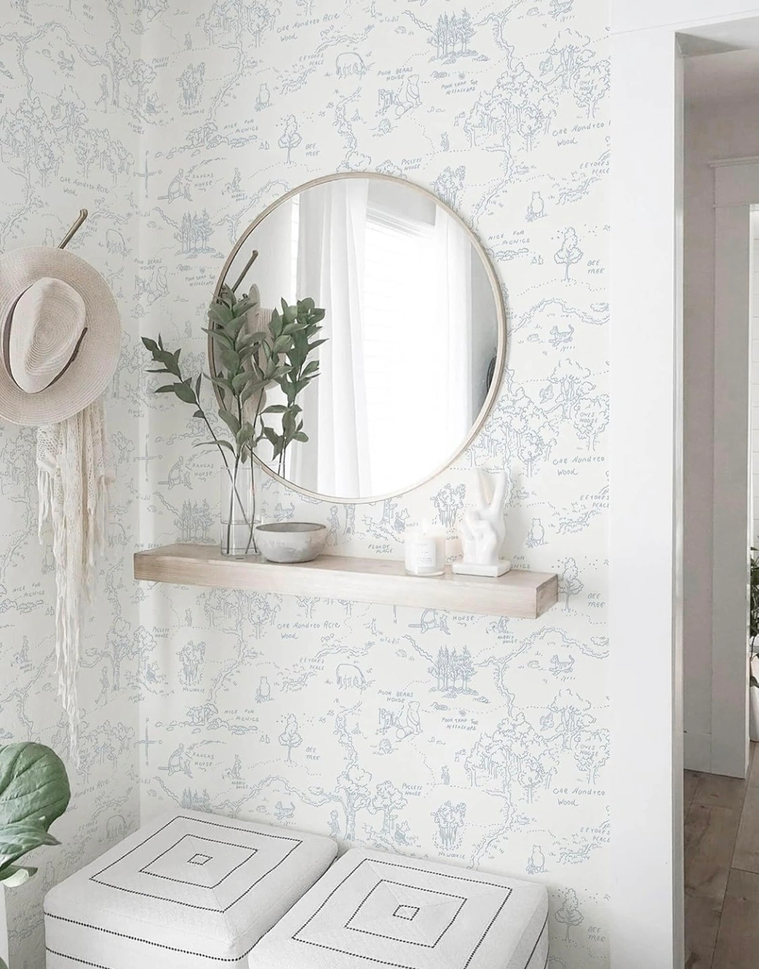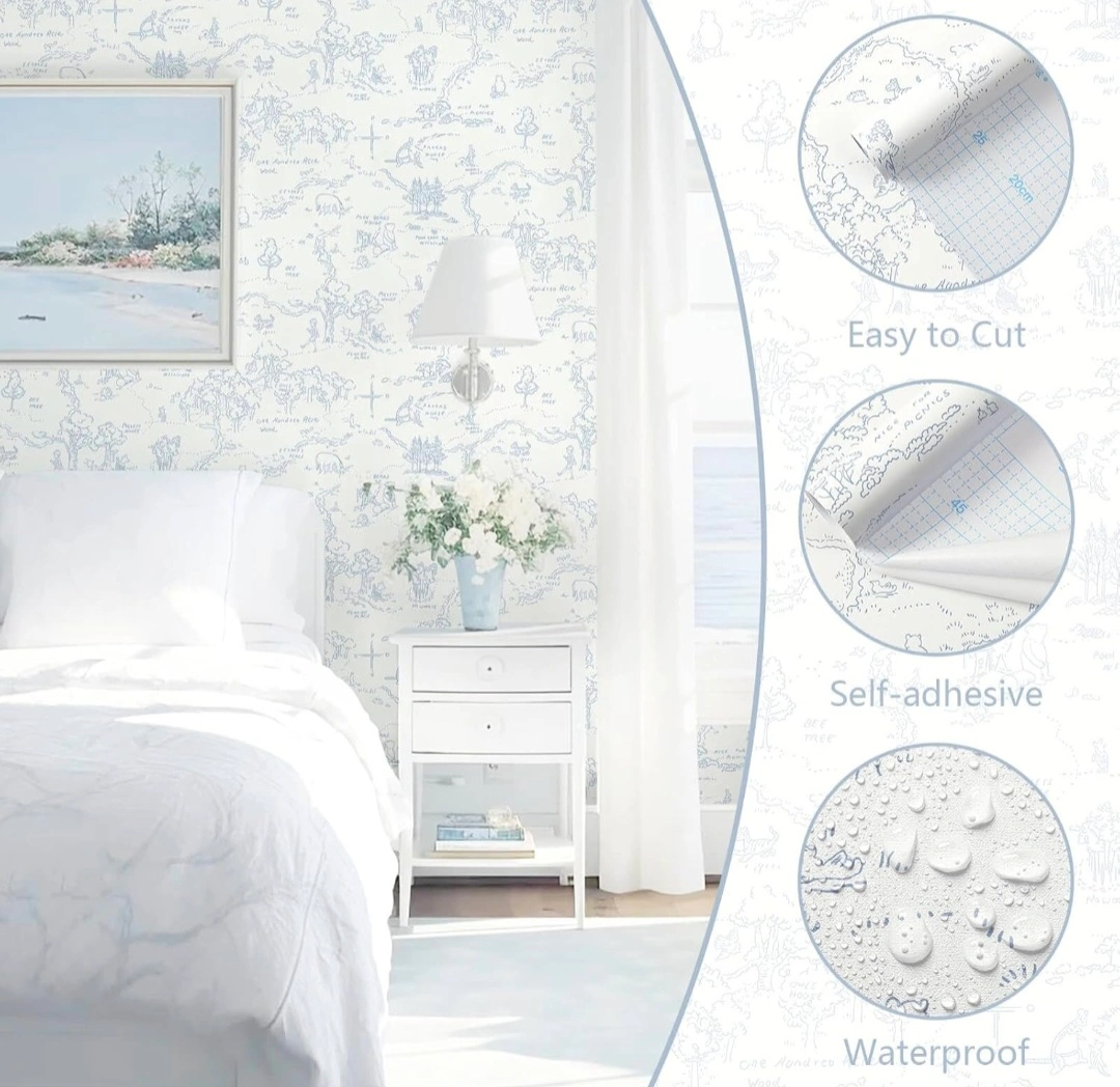 Spruce up any room with this adorable wallpaper! It's self-adhesive, so it's super easy to apply, and it's even waterproof, making it perfect for kitchens or bathrooms. Bring a touch of Hundred Acre Wood to your home! Have multiple rolls available. 17.3" x 197"