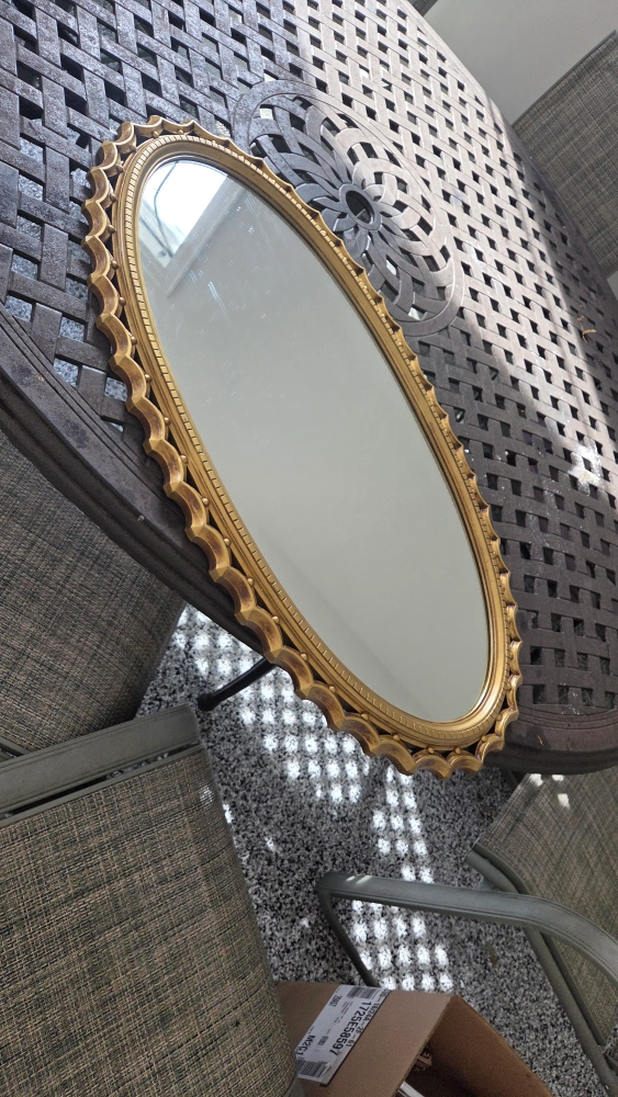 Selling an oval mirror with a beautiful gold frame! It's in great condition and would look lovely in any room. Perfect for adding a touch of elegance to your home decor