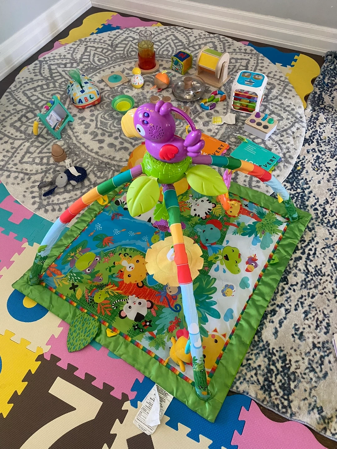 Selling a baby activity gym and play mat. It features a colourful jungle theme with various animals and interactive elements. Great for tummy time and early development! Many LOVERY toys for baby/toddler too.