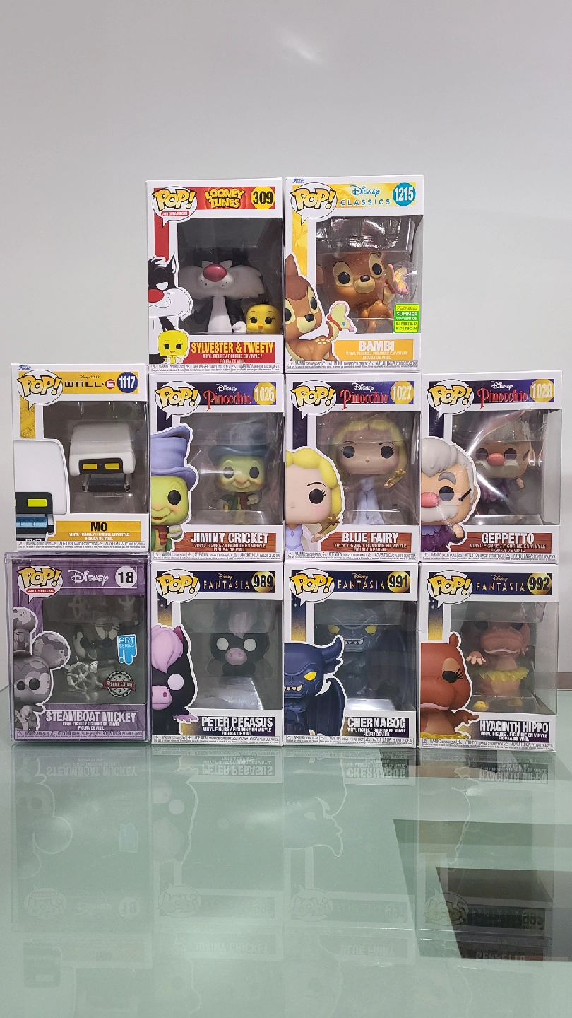 Selling a collection of Funko POP! figures from Disney Classics and Fantasia. Includes characters like Bambi, Jiminy Cricket, Blue Fairy, Geppetto, and more! All figures are in their original boxes and ready for a new home