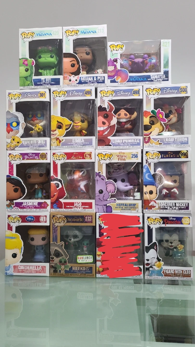 Selling a collection of Disney Funko Pop vinyl figures! All figures are in their original boxes and in great condition. Perfect for any Disney or Funko collector. Figures include characters from Moana, Lion King, Aladdin, Cinderella, Sleeping Beauty, Pinocchio, and Fantasia