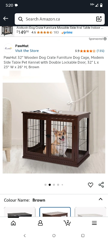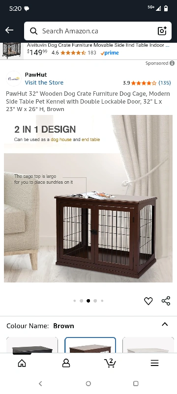 Selling a PawHut 32" wooden dog crate furniture. It's a movable side end table pet kennel with a double lockable door. Dimensions are 32" L x 23" W x 26" H. It's in brown colour. Originally bought for $149.99 sealed in box brand new