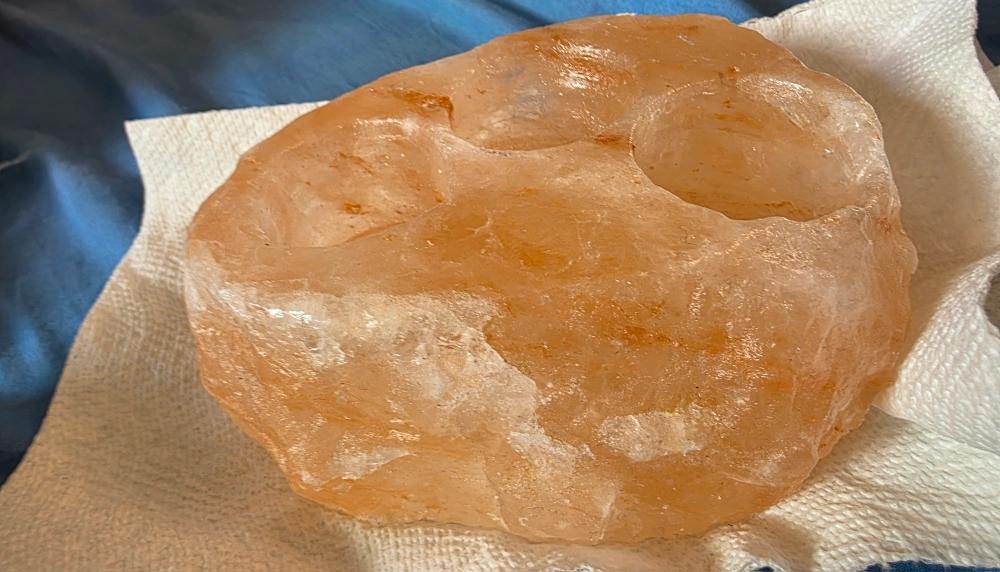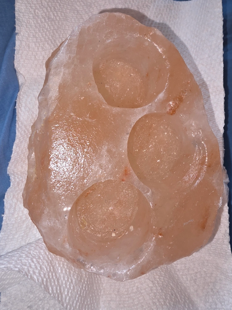 Selling a Himalayan salt candle holder. It features three circular indentations to hold tea light candles. It's in good condition and ready to bring a warm glow to your space. pickup near High Park Station.