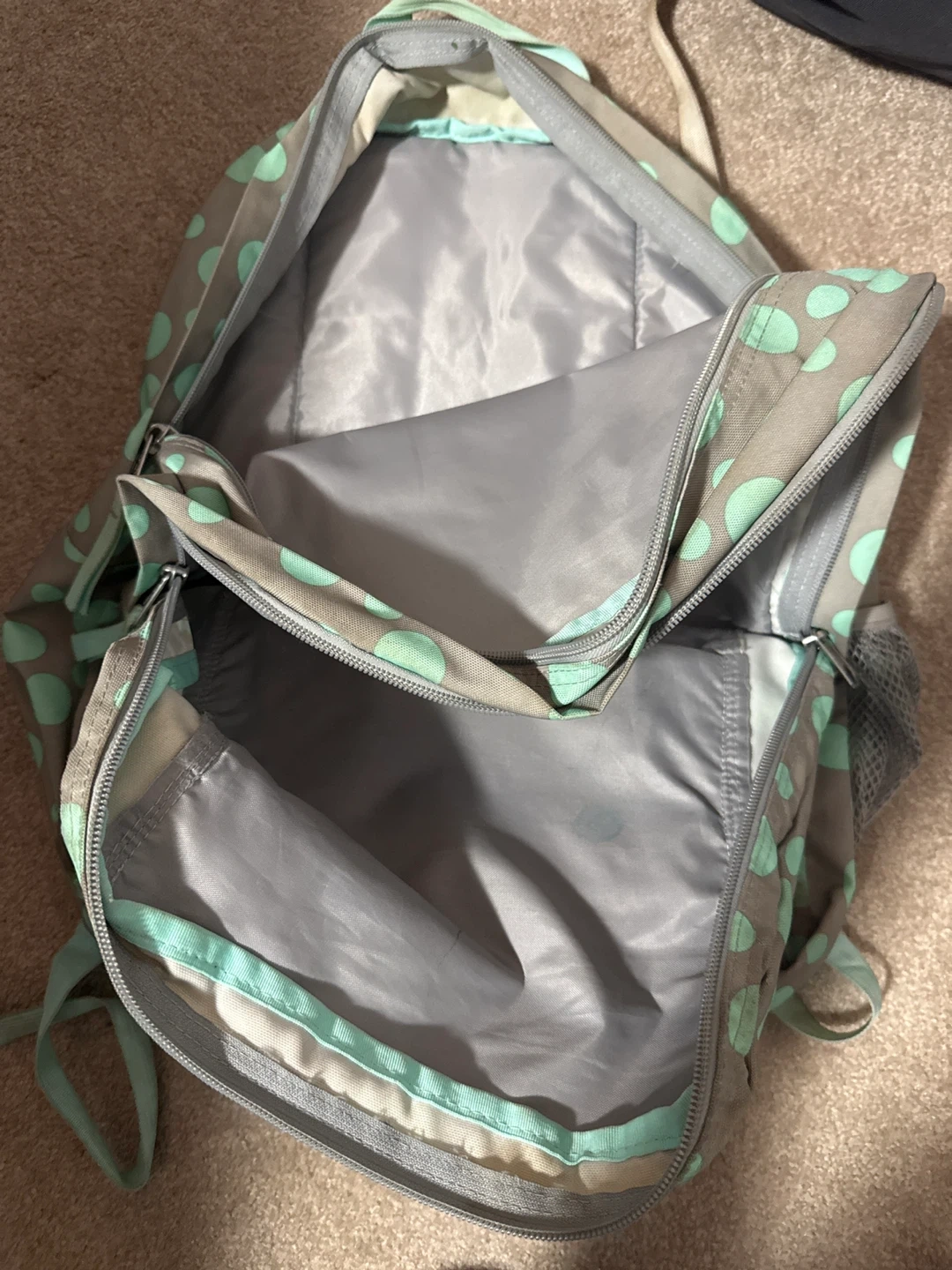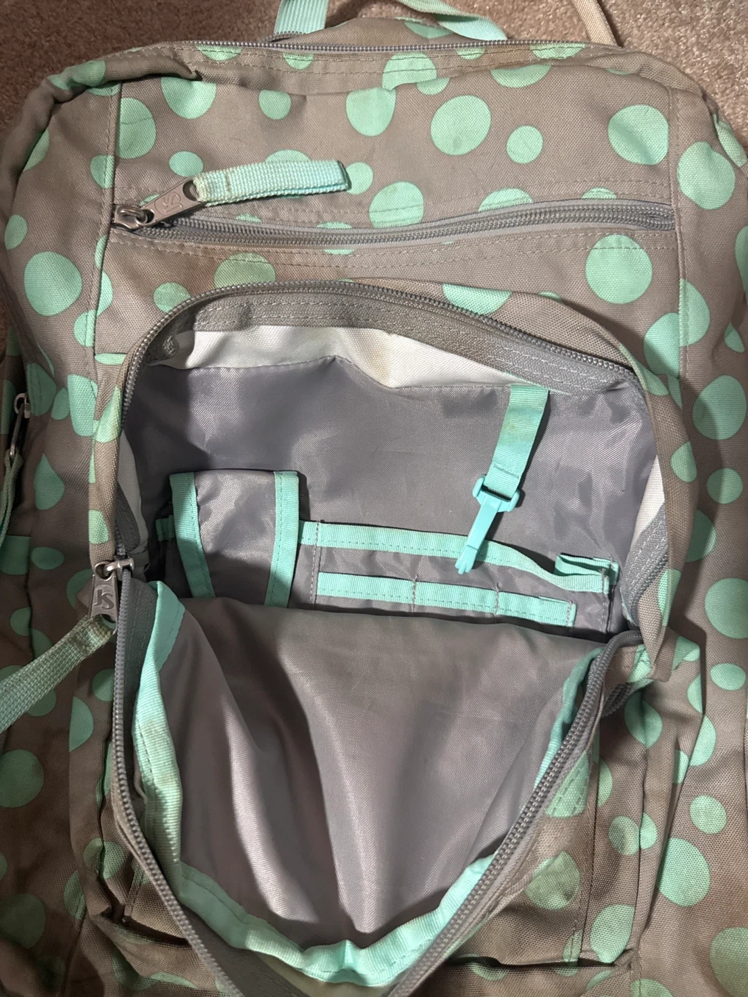 Selling a JanSport backpack with a cute mint polka dot pattern! Perfect for school or travel.
