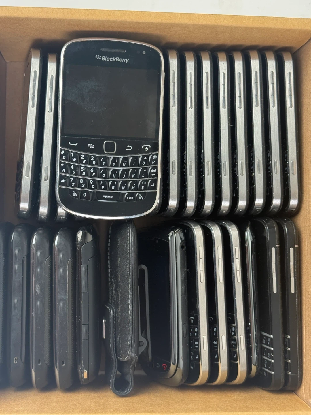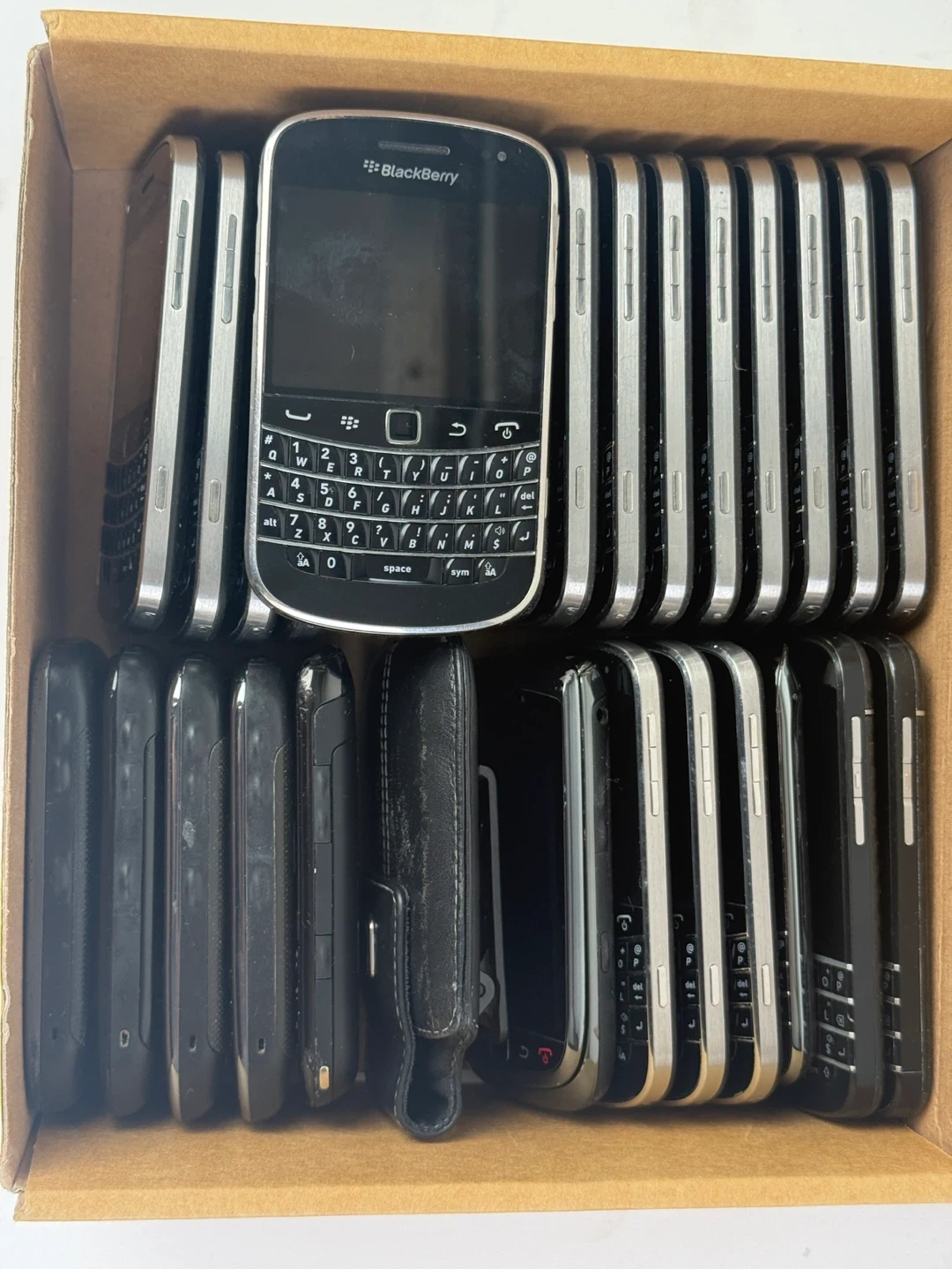 Selling a box of 20 working vintage Blackberry phones. These phones are in excellent and have all been tested. I have 18 Bold 9900 with good batteries. 4-5 curves. A torch and about 5 additional phones that need batteries. They are sold as-is, perfect for collectors or those interested in vintage technology. These are a blast from the past!