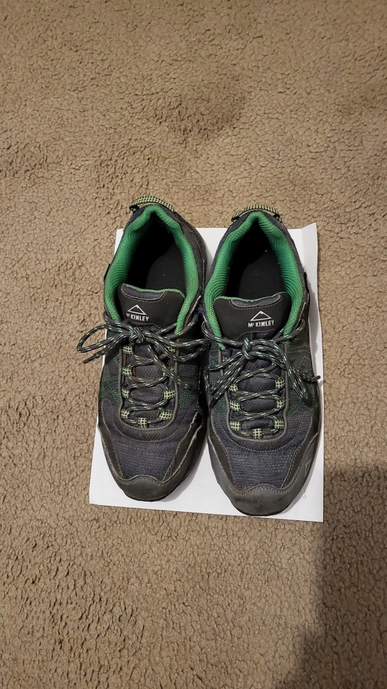 Selling a pair of McKinley hiking shoes in size US 6. They are black with green accents. Great for outdoor adventures!