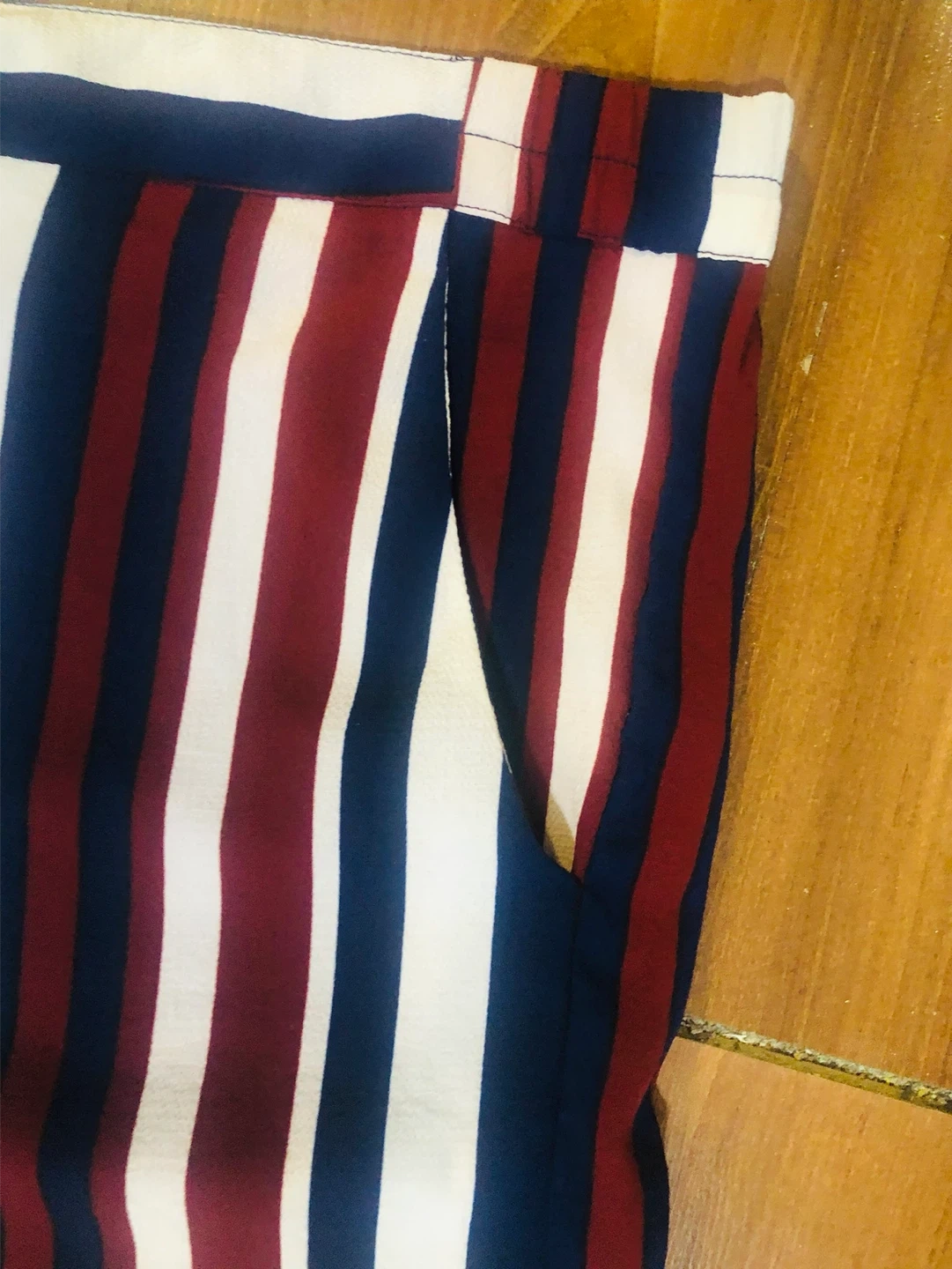 Cute striped shorts in red, white and blue! They're perfect for summer and super comfy. Great for casual wear or dressing up a bit. They have a nice, relaxed fit and are in great condition