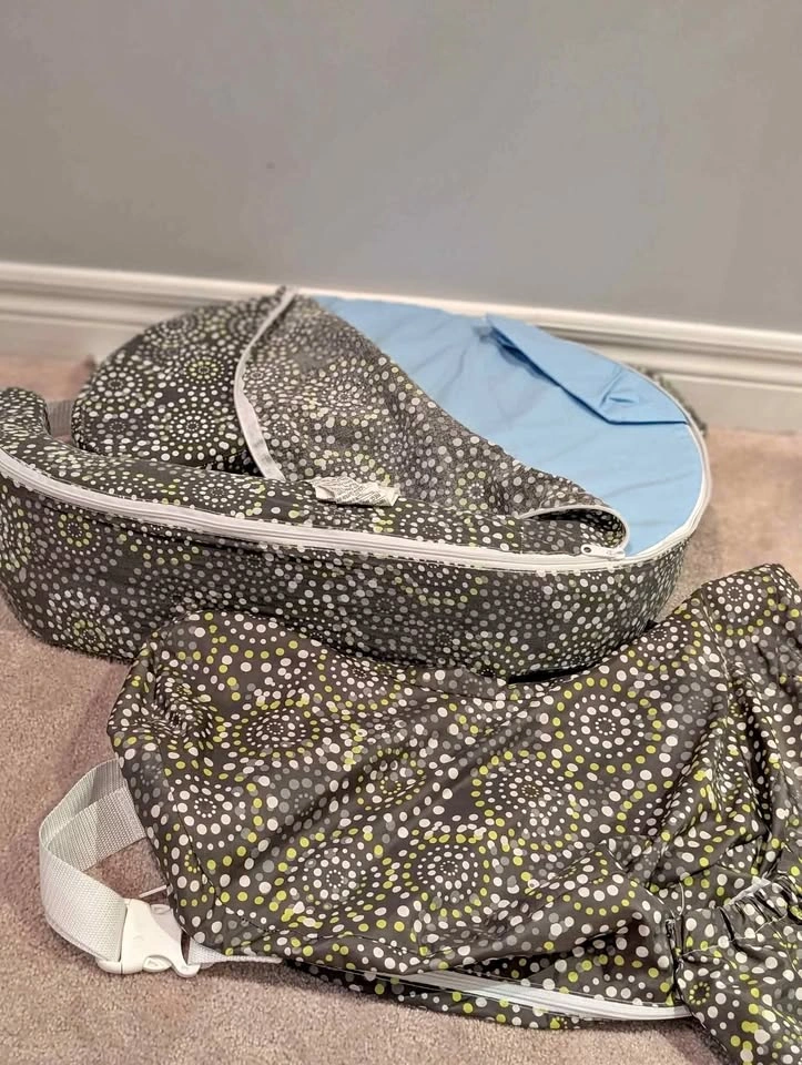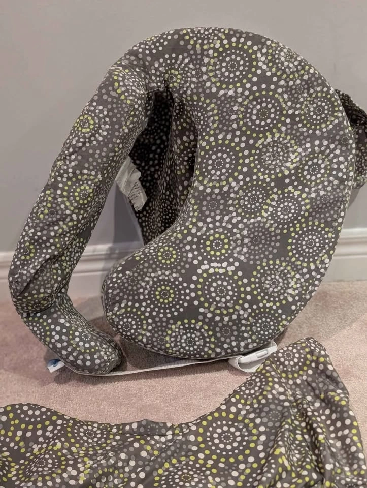 64Brand: my brest friend Includes: nursing pillow, one new cover, one used cover and a water proof blue liner cover. The pillow is gently used, purchased in beginning of this year, baby has outgrown it. Purchased in May