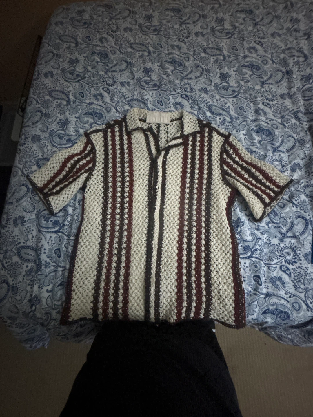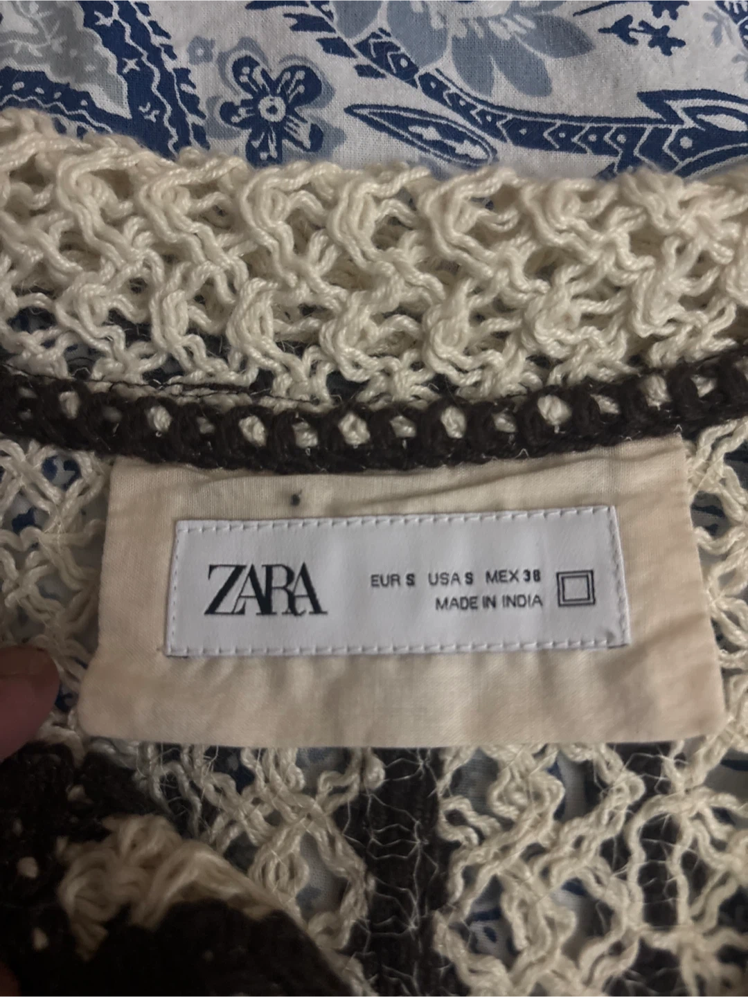 82Selling a Zara knit shirt in size small. It has a unique striped pattern and is made in India. It's in great condition and would be a stylish addition to your wardrobe!