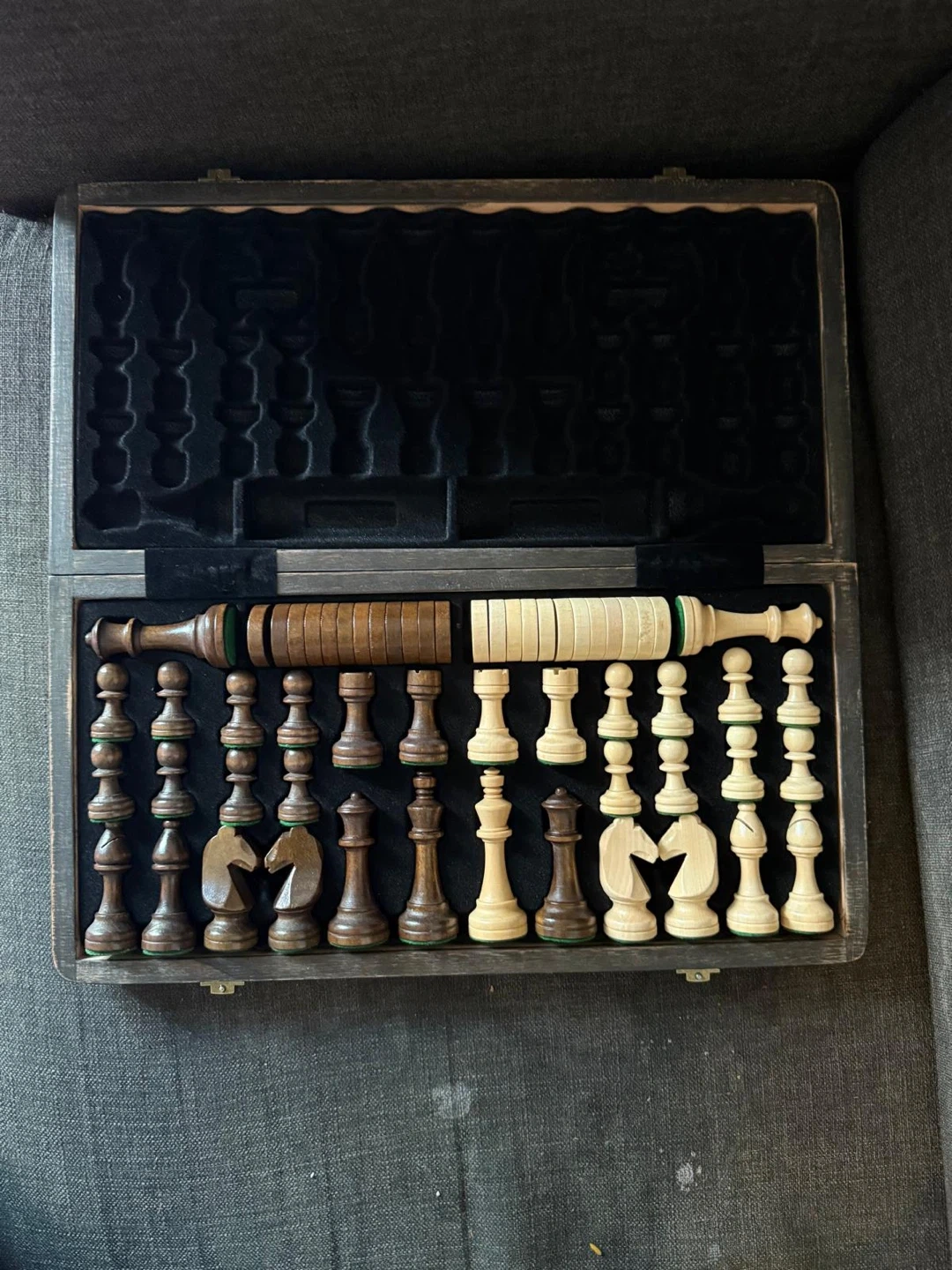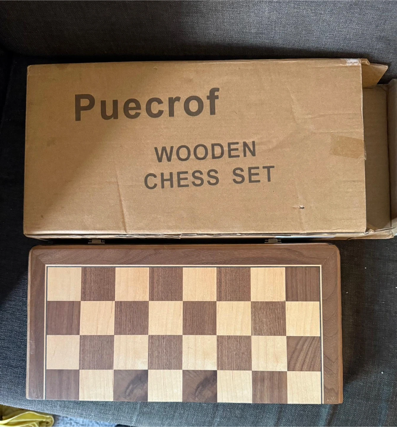 15Selling a Puecrof wooden chess set, complete with all the pieces and the original box! It's in great condition and ready for a new home. Perfect for chess enthusiasts or anyone looking to learn the game