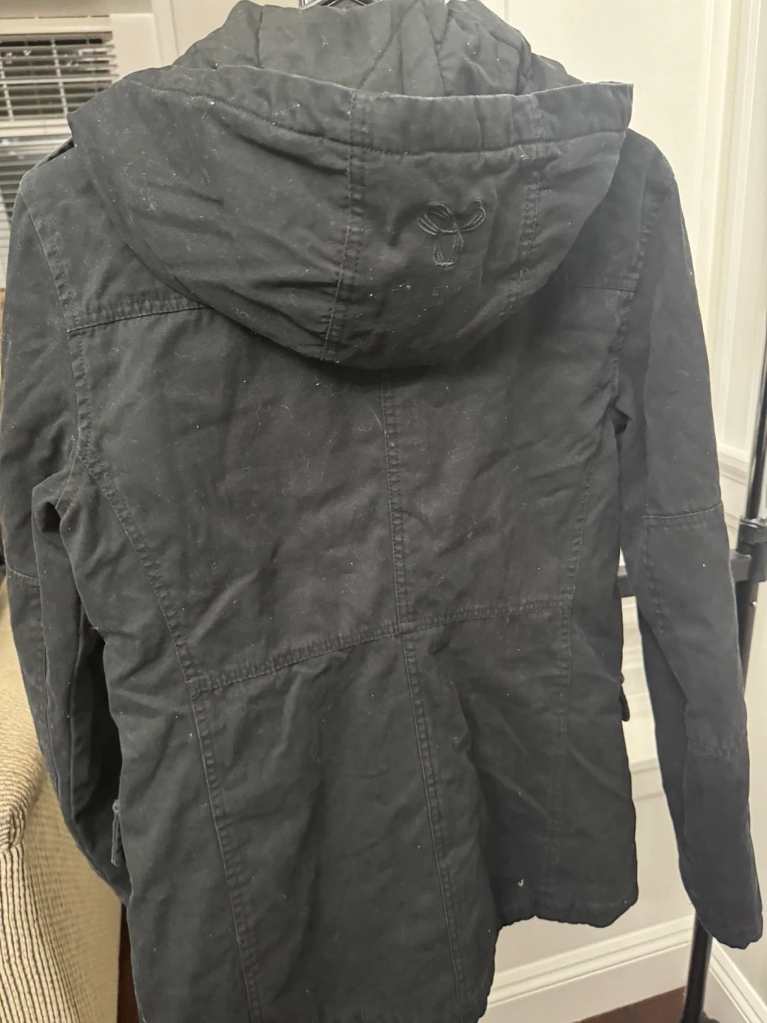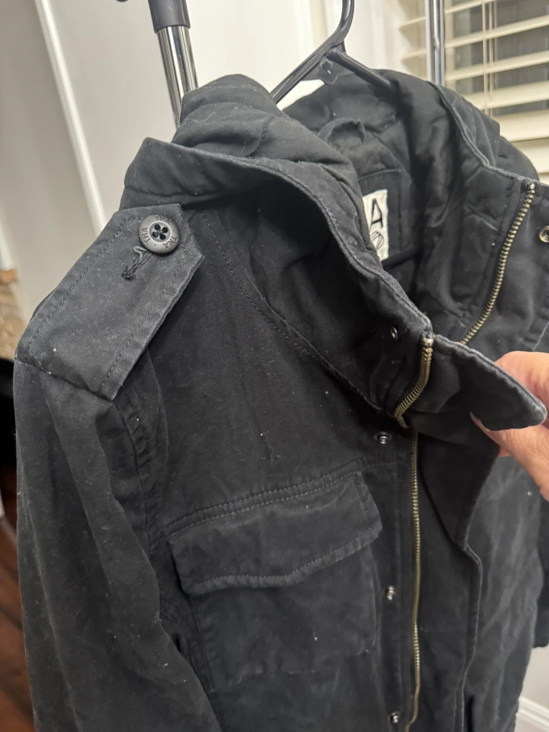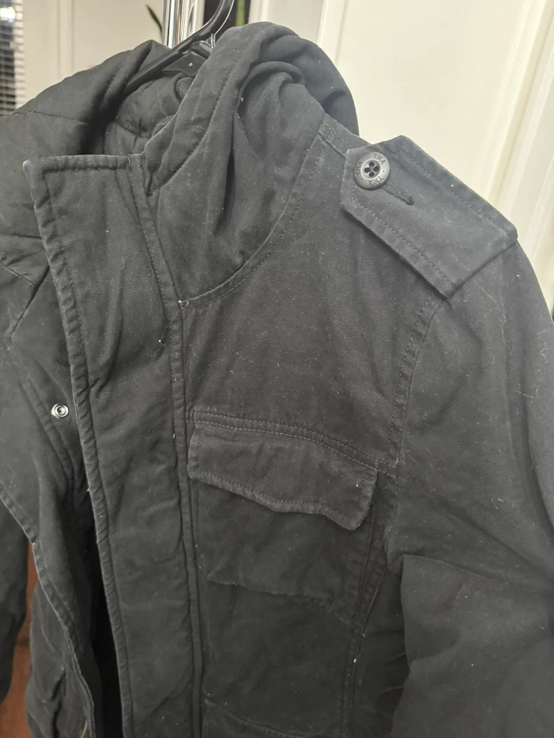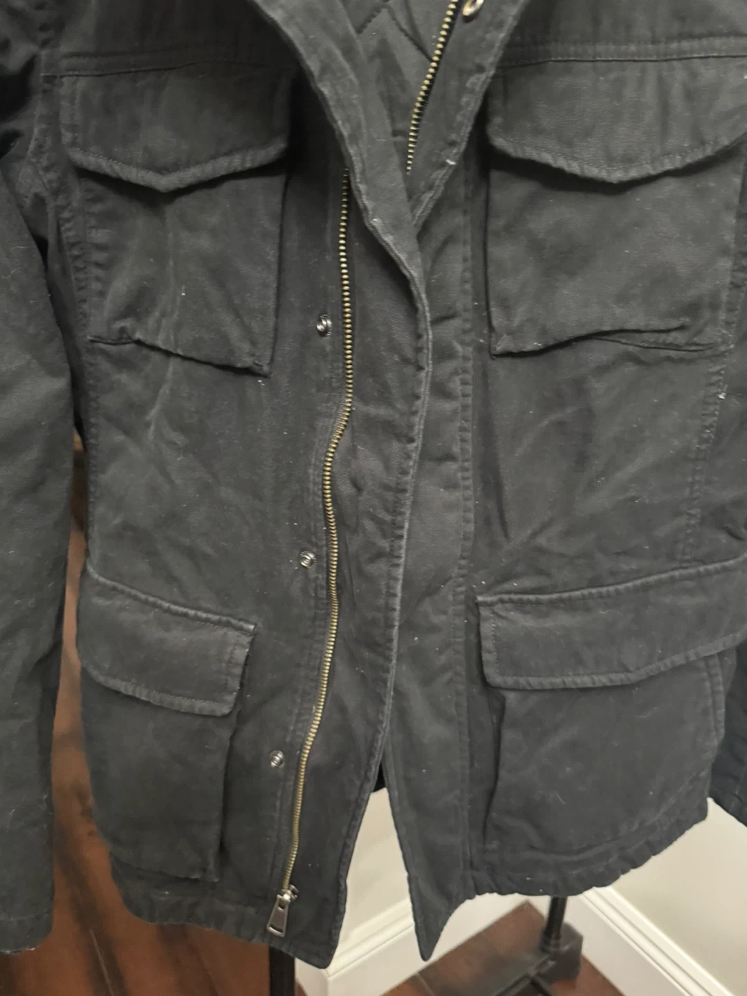 Selling a TNA black jacket in size small! It's in great condition and perfect for layering during the cooler months. The jacket features a quilted lining and multiple pockets, making it both stylish and functional