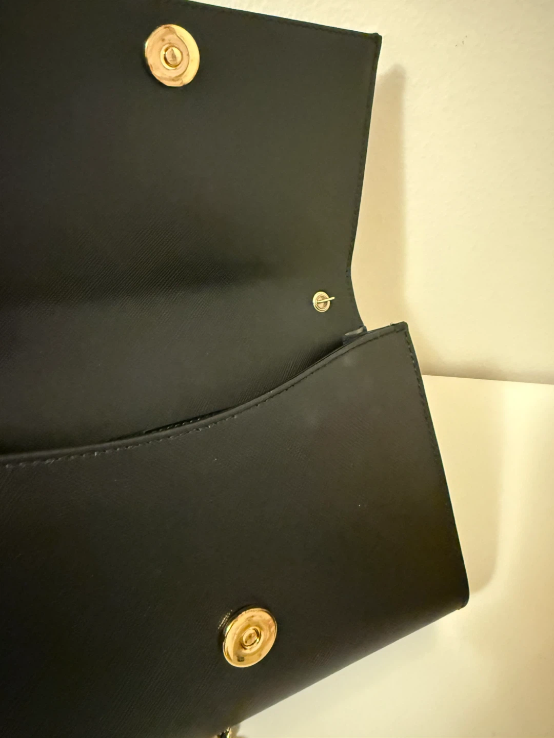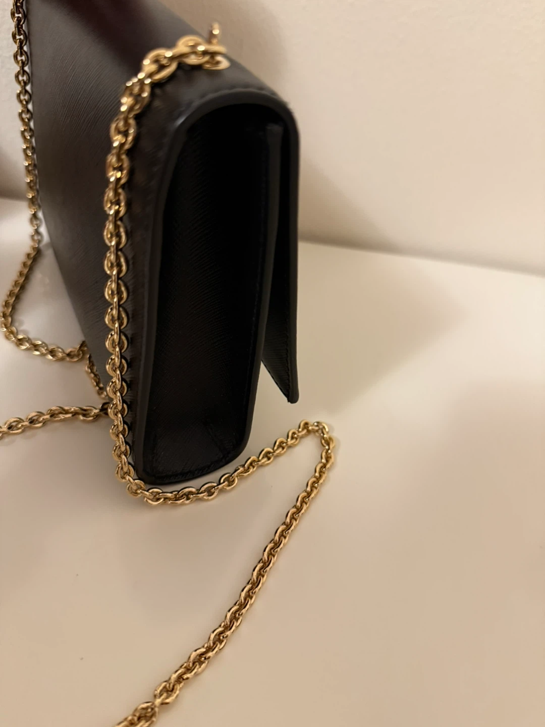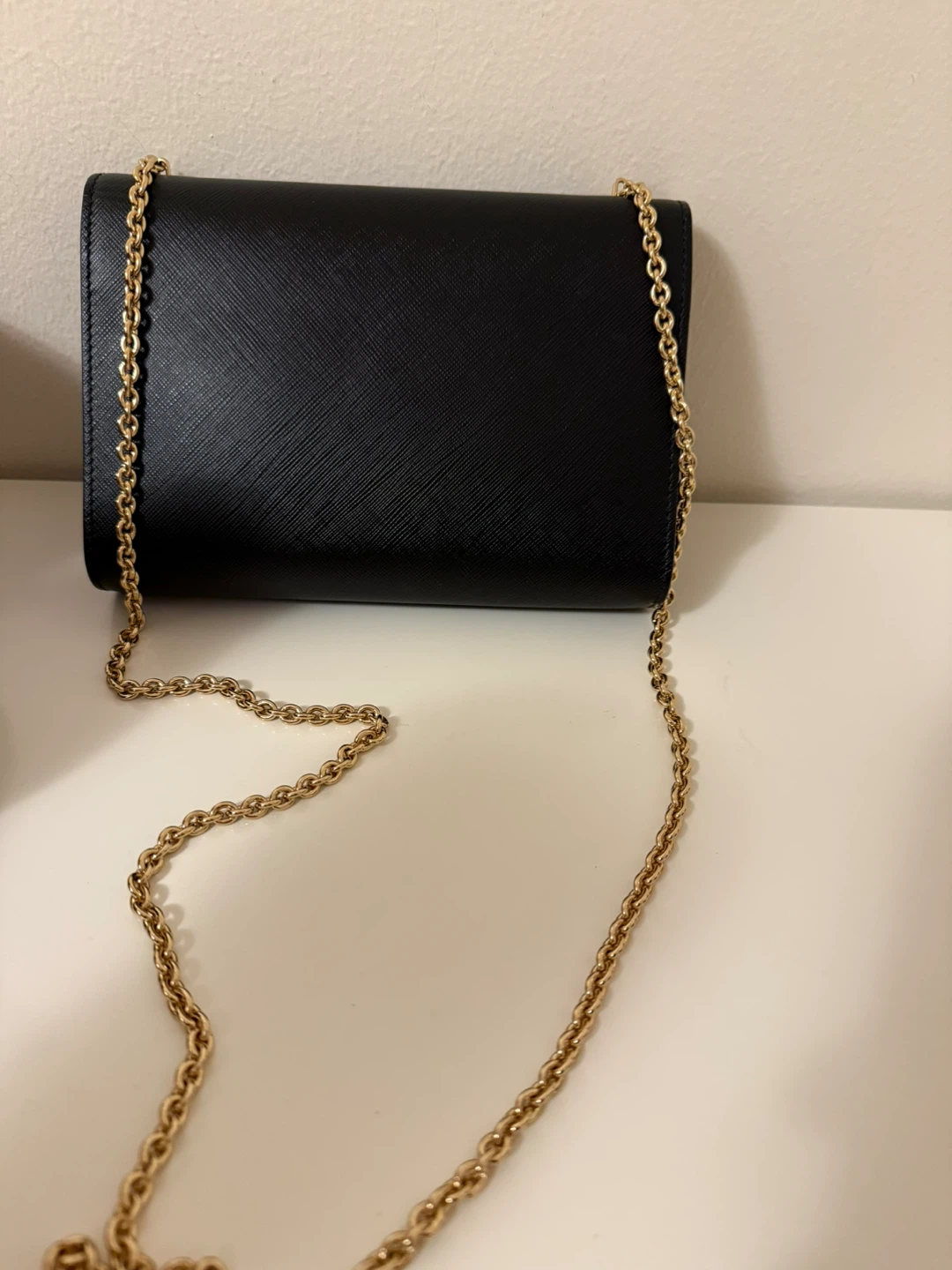 Selling a beautiful Salvatore Ferragamo crossbody bag! It's a classic black leather with a gold chain. The bag is in great condition and perfect for everyday use or a night out.