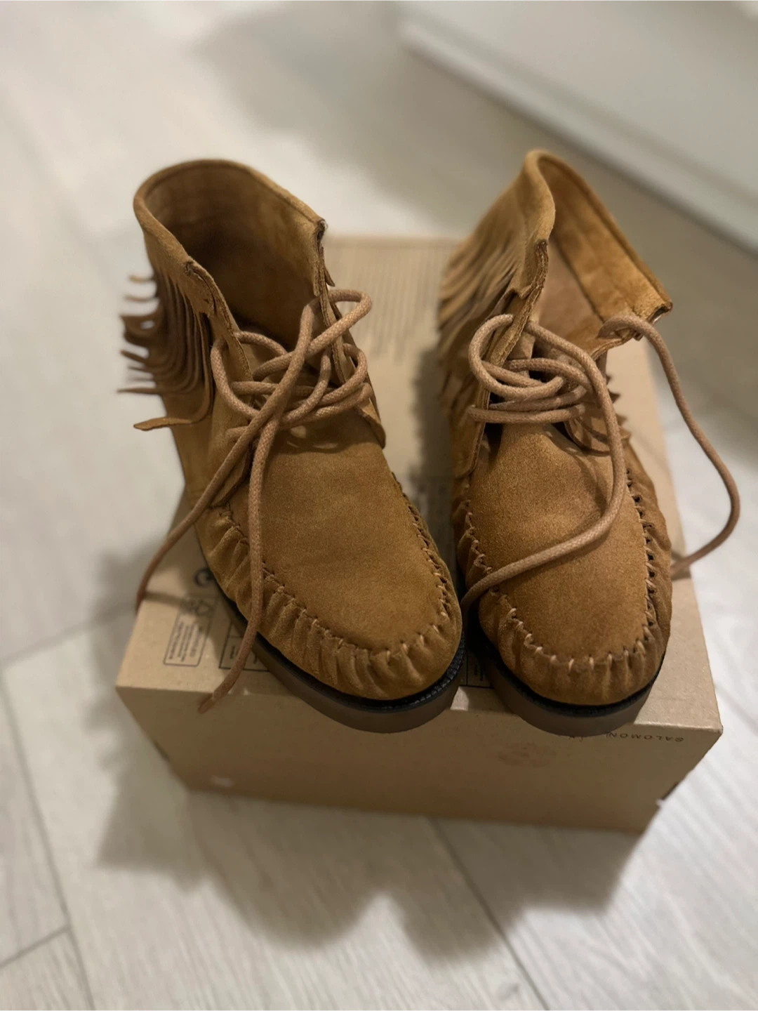 These stylish Minnetonka moccasin boots are in excellent condition like a new. They feature a classic fringe design and are made of soft suede. Perfect for adding a touch of boho chic to any outfit brand is bershka not isabel marant like a new just worn once!