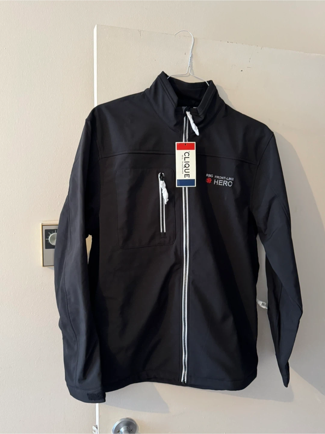 Selling a black Clique softshell jacket. It's brand new and has tags on it. Perfect for layering or wearing on its own during milder weather. It's a stylish and functional jacket! Medium size. Can be used as a spring or fall jacket. Retail price $70 plus tax.