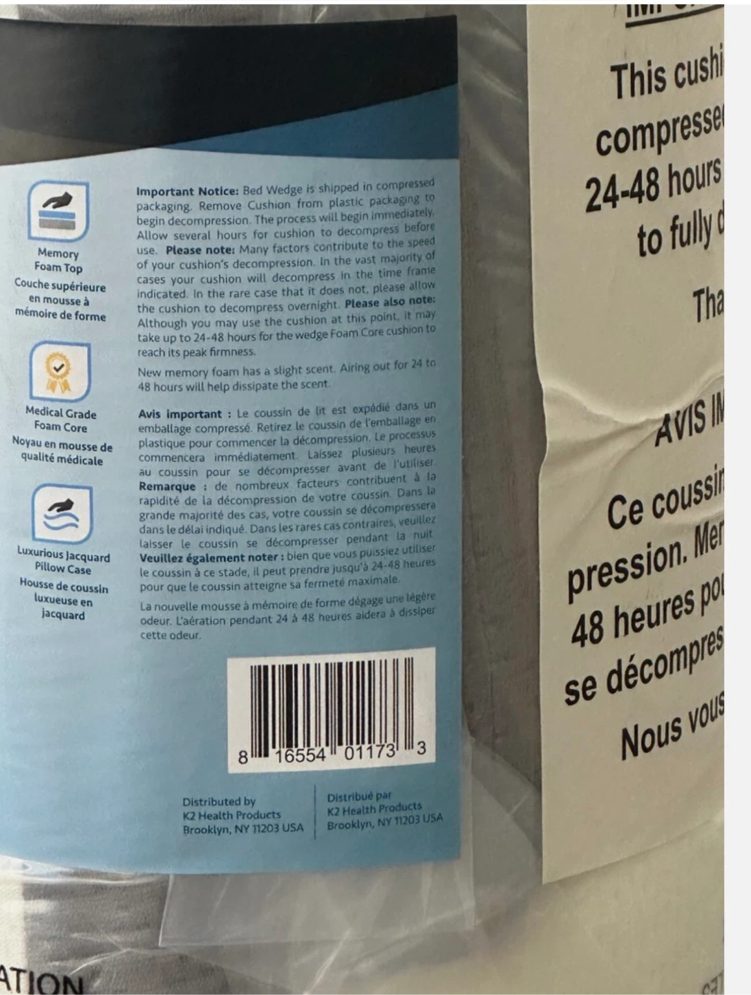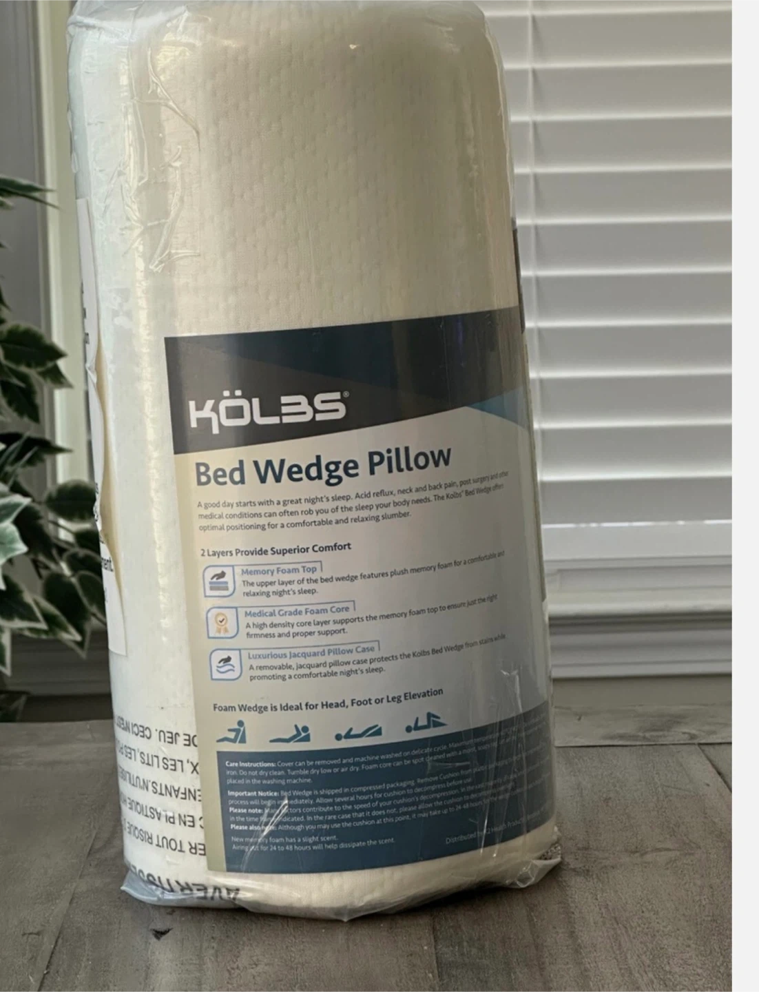 248I'm selling a brand new Kölbs Bed Wedge Pillow! It's still in its original packaging. This cushion is shipped compressed, so please allow 24-48 hours for it to fully decompress after opening. The cover can be removed and machine washed on a delicate cycle. Tumble dry low or air dry. Foam core can be spot cleaned with a mild detergent and water. Don't miss out!