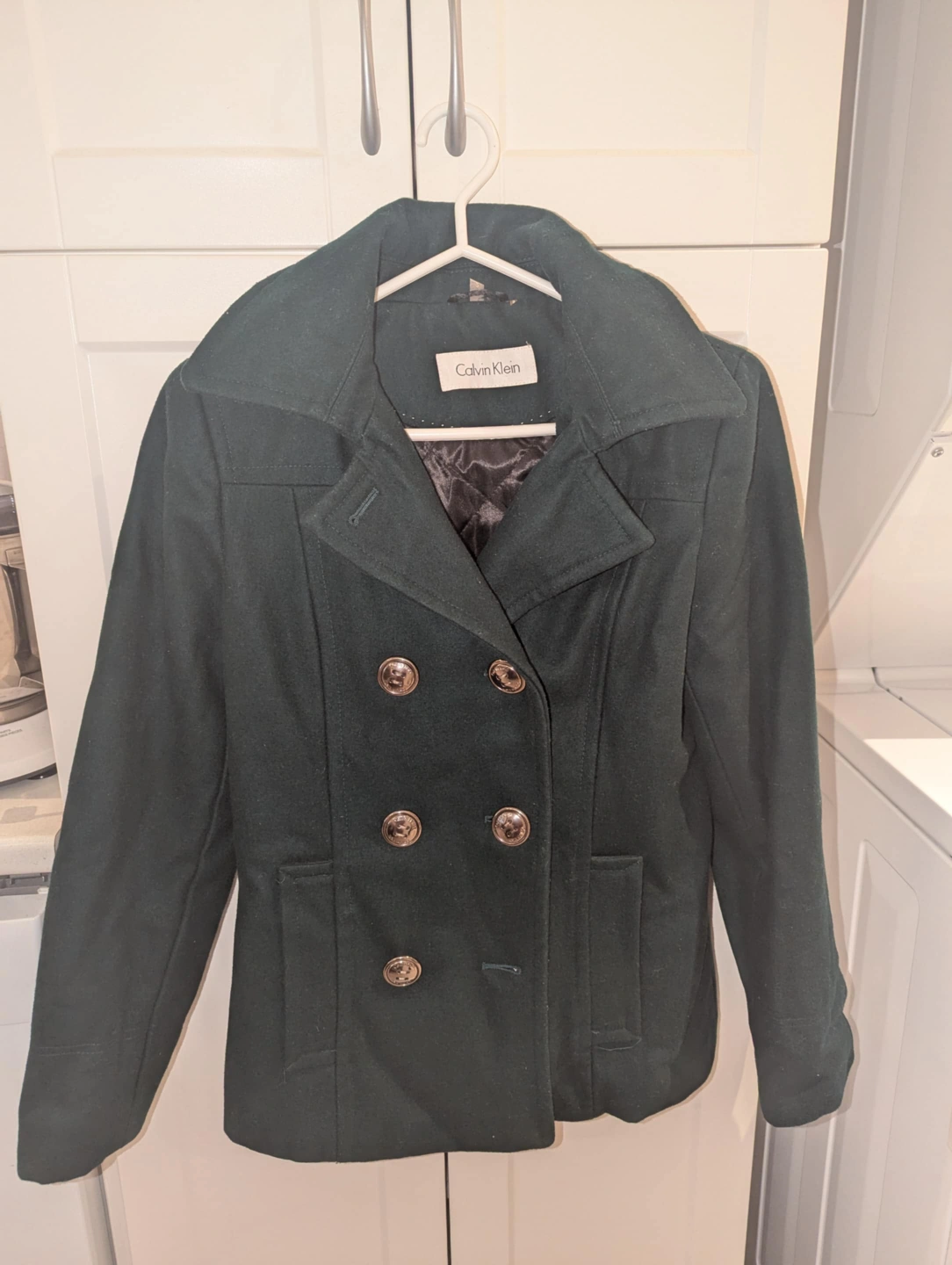Selling a stylish Calvin Klein pea coat in a lovely green colour! It's a size small and in great condition. Perfect for fall or spring weather!