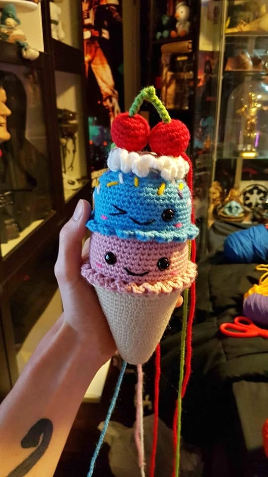All of my crocheted pieces are handmade by myself using acrylic, cotton, wool or a mixture of any of them. If you would like specifics about a certain piece please ask. All items are priced very fairly at $5.00/hour of work put into it plus materials. Most have safety eyes which are basically impossible to remove so they are safe for children but some have stitched buttons, it should be obvious but again feel free to message me for specifics.