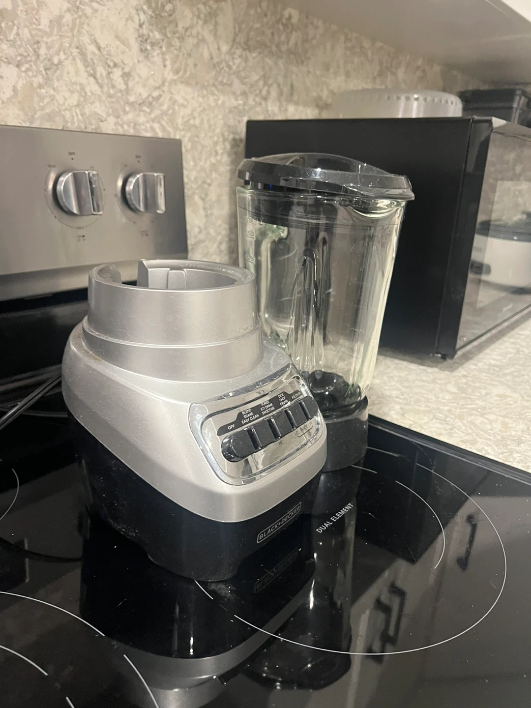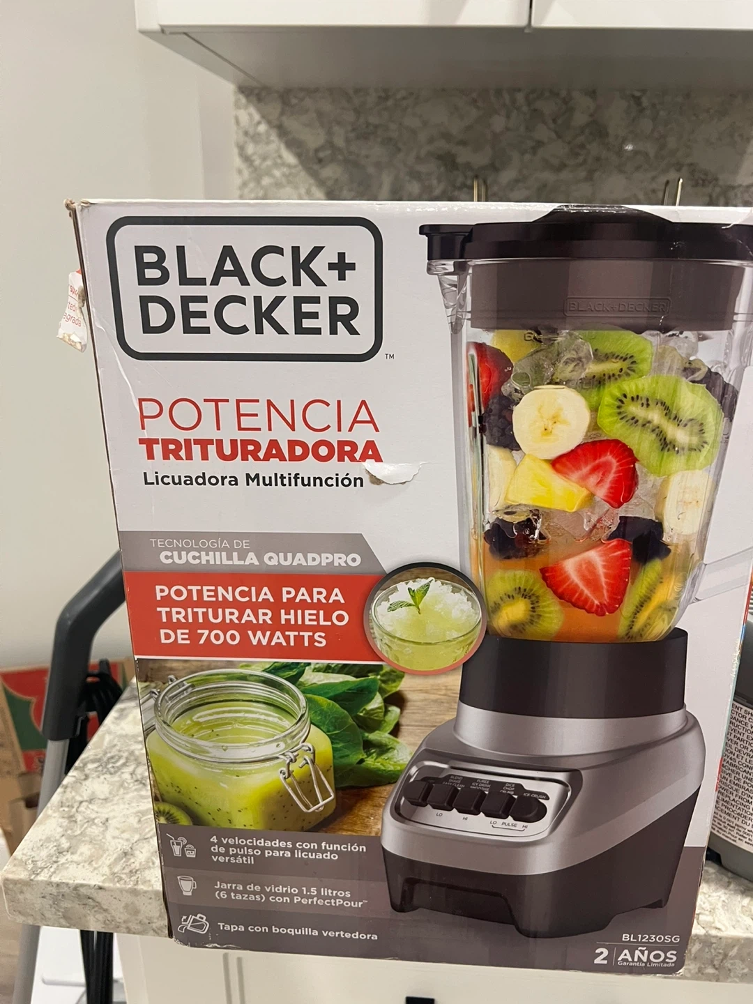 Selling a Black+Decker blender, model BL1230SG. It's a versatile blender with a 1.5-liter glass jar. It features a Quadpro blade system and 700 watts of power for ice crushing. It has 4 speeds with a pulse function. The box is included!