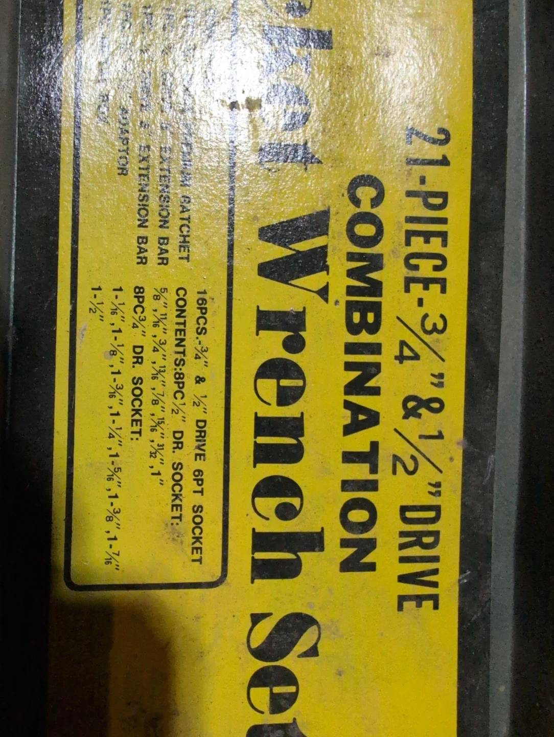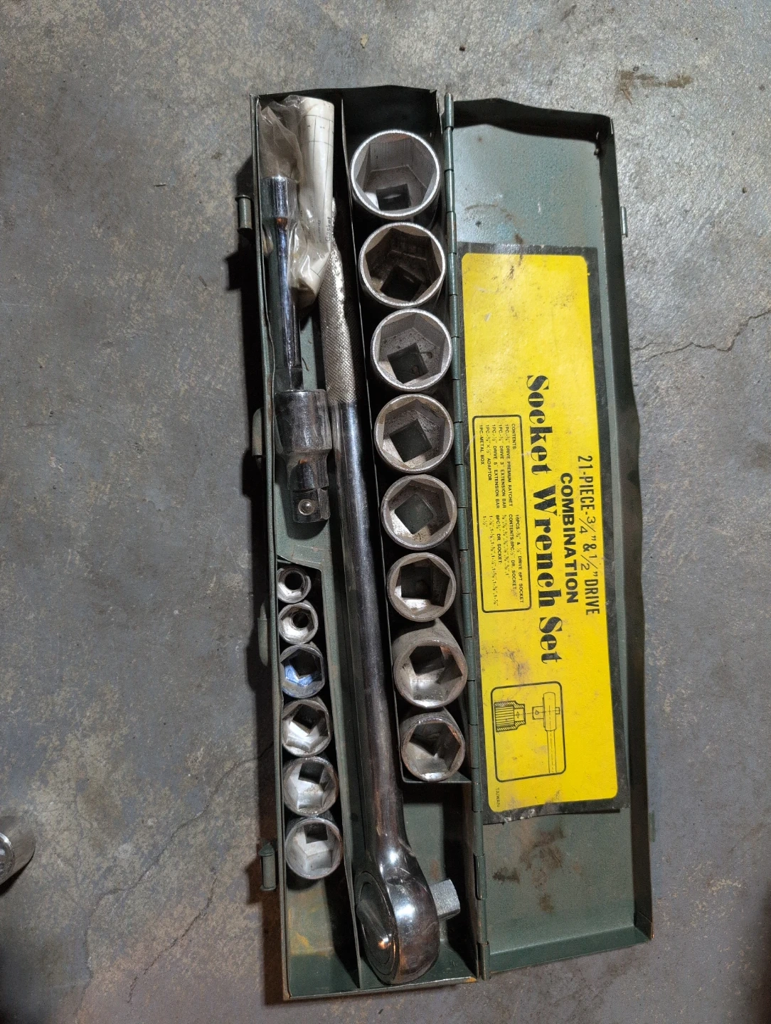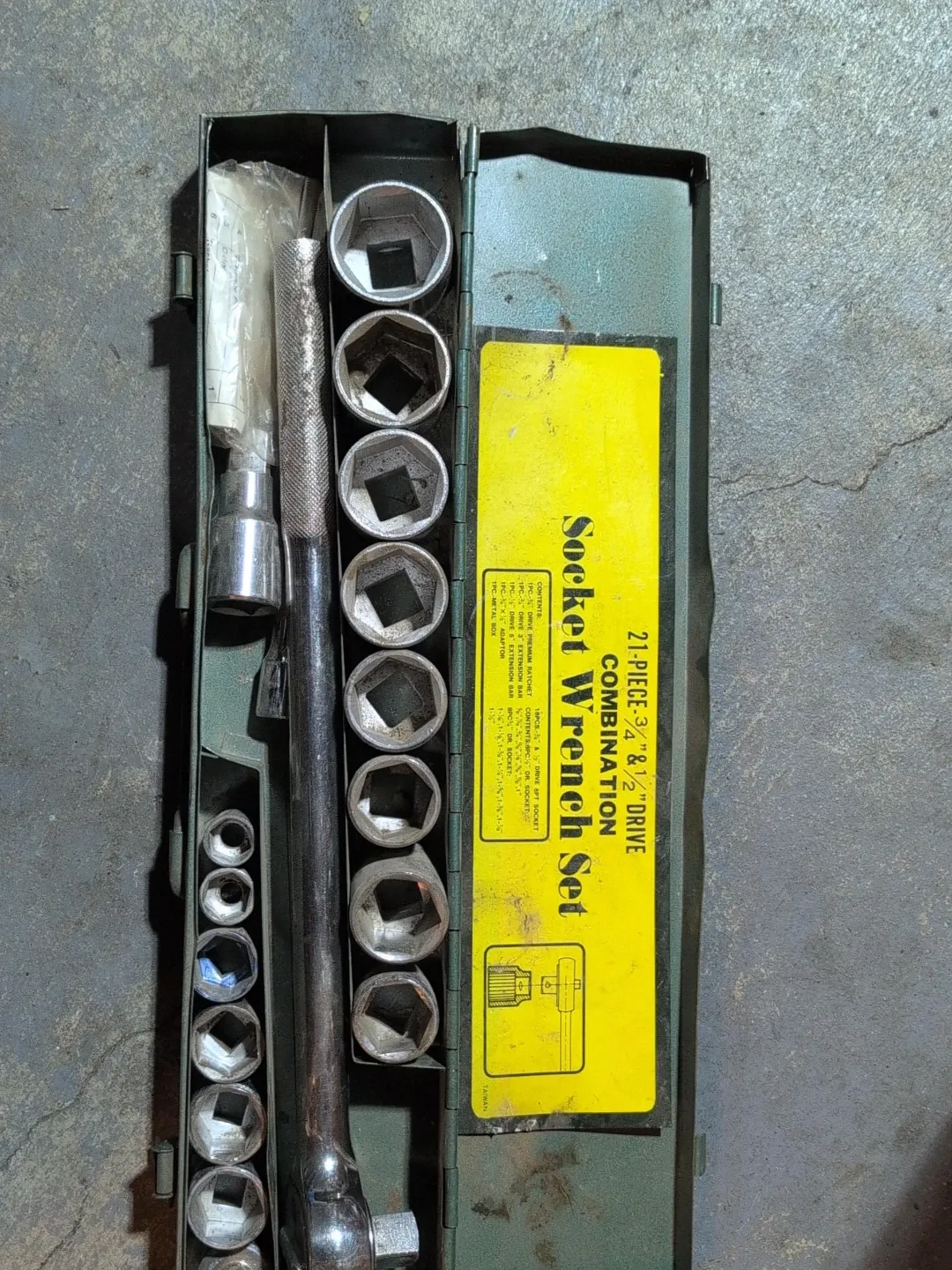 This is a 1/2" socket wrench set combination socket and a 1/2" ratchet. The set features 1/2" drive sizes. This set is useful for various mechanical tasks.