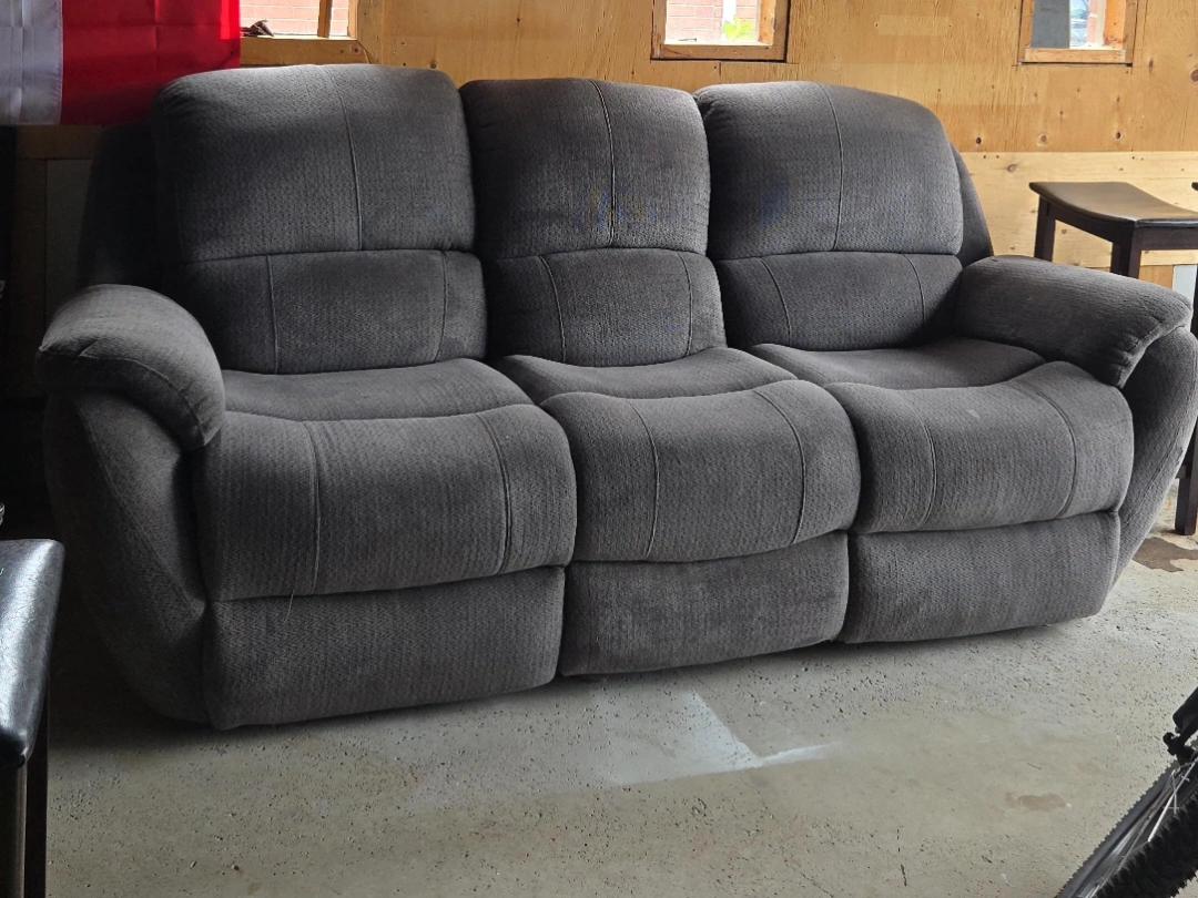 Selling a comfy three-seat reclining sofa. It's in great shape and ready for a new home! The sofa is a nice neutral grey colour that would fit well in any living room.