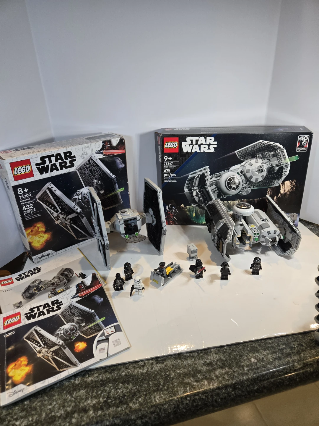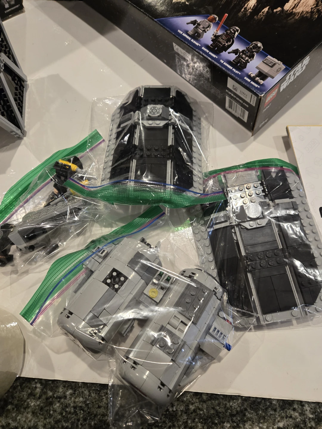 Plesse note - on the tie fighter, 4 pcs went missing due to my stupidity but they were replaced With near identical parts. Please refer to photos.