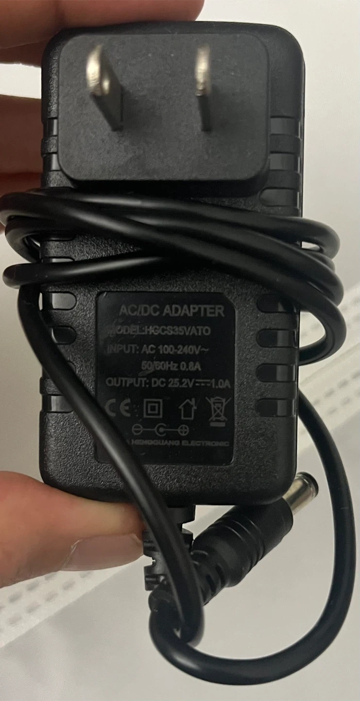 Bundle of four AC/DC power adapters with various models and output specs. Input: 100-240VAC. Outputs include 5VDC 1A, 25.2V 1A, 12V 500mA, and 12V 600mA. These are essential for powering a range of electronic devices.
