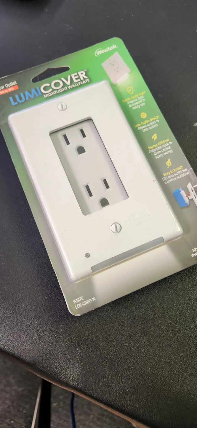 Selling a Westek Lumicover nightlight wallplate in white. This energy-efficient automatic dusk-to-dawn outlet cover is easy to install. It provides a low-profile nightlight that glows to illuminate outlets. Great for hallways and bedrooms!
