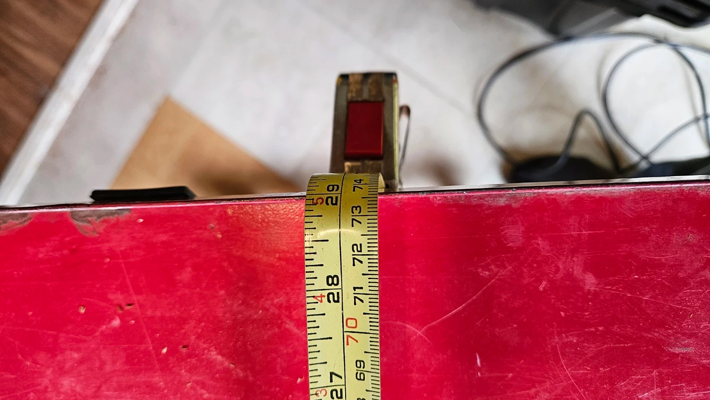 This is a red metal rolling work table. It's ideal for mechanics or anyone needing a stable surface for tools and parts. The table surface measures approximately 36" X 20"X 1 1/2 "call or text me or email at dugki9@hotmail.com thanks sincerely Douglas