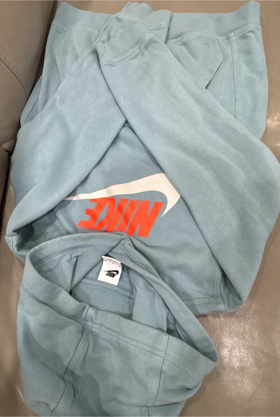 If u see add it’s available. Preloved. Light blue Nike hoodie with a large orange and white swoosh logo on the front. Pick up at midland and Lawrence, Scarborough