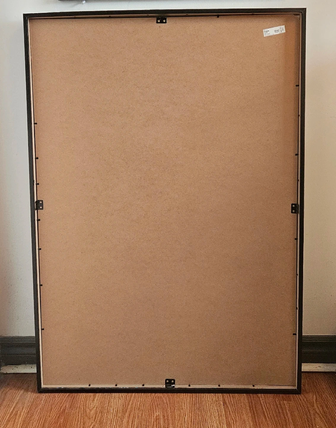 IKEA RIBBA picture frame in black. It's made in China and designed in Sweden. This frame holds photos and artwork for display.