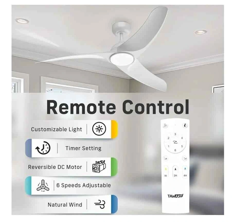 Brand new 42 inch low profile ceiling fan with light and remote control. Flush mount design with 3 color temperature options and dimmable brightness. Features a quiet reversible motor, suitable for bedroom or indoor/outdoor use.