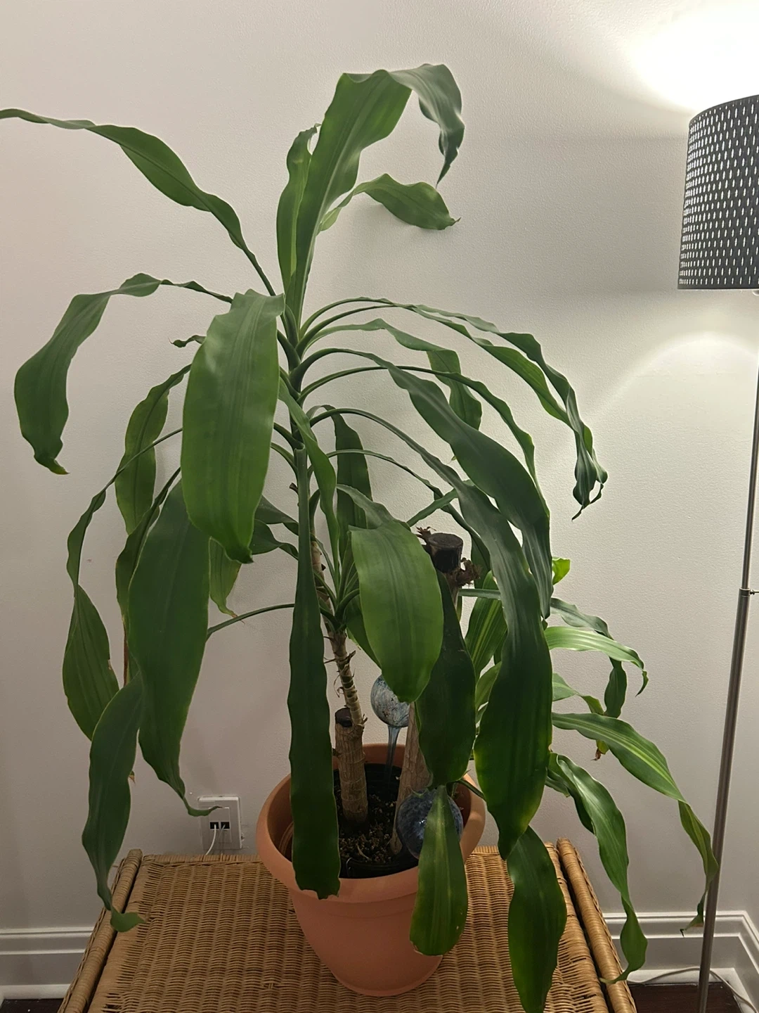 Selling a Dracaena fragrans plant in a terracotta coloured pot. It's a lovely indoor plant that adds a touch of greenery to any space. It's been well taken care of and is looking for a new home!