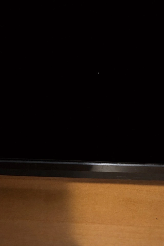 Works very well. There is an extremely small chip in the screen ( see second photo). It’s the size of a pixel and barely noticeable. Comes with remote and cord. Pickup in Scarborough