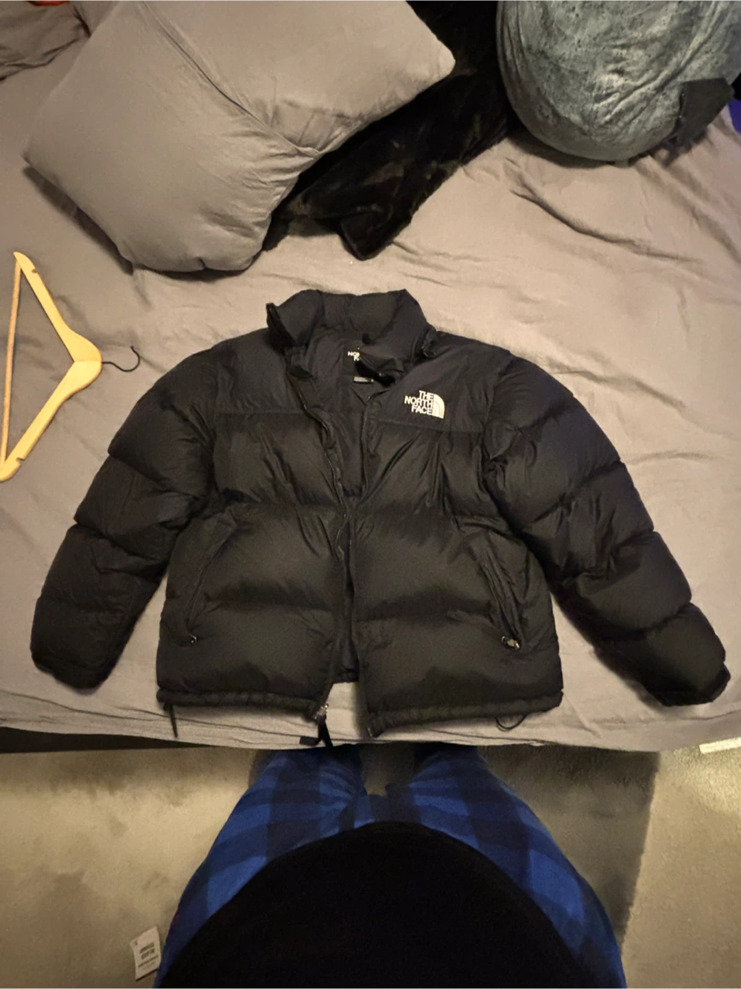 This is a black puffer jacket from The North Face. It's a men's size large and made in Bangladesh. It's a warm, insulated jacket perfect for cold weather!